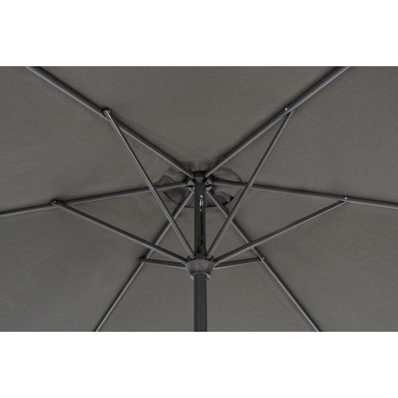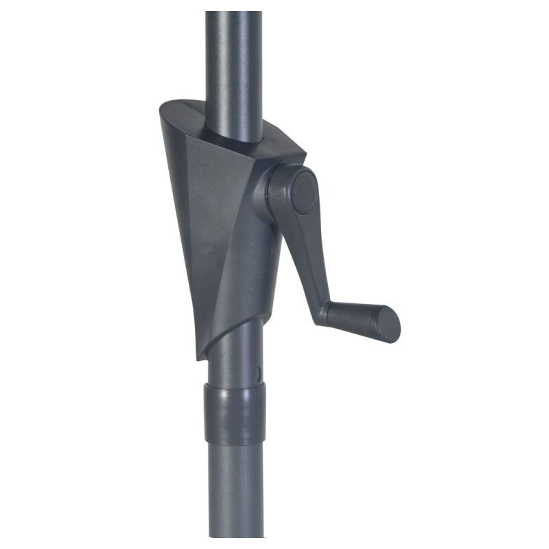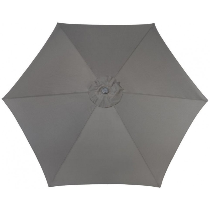 Šesťramenný slnečník s moderným dizajnom a pevnou kovovou konštrukciou. Otváranie za pomoci dizajnovej kľučky, poťah má vodoodpudivý nástrek, ktorý Vás ochráni pred miernym dažďom. BEZ PODSTAVCA