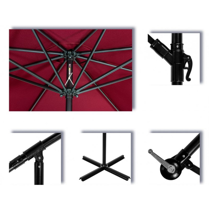 Slnečník vrátane poťahu je vyrobený z pevného polyesteru 180 g/m² so stabilnou oceľovou konštrukciou a ponúka mnoho farieb. Náš slnečník je možné pohodlne otvoriť a zavrieť pomocou ručnej kľučky. Optimálny tieň získate vďaka nastaviteľnému uhlu slnečníka a otočnému ramenu do všetkých strán. Slnečník poskytuje ochranu pred slnečnými lúčmi, cirkuláciu vzduchu podporuje integrovaná strieška, ktorá zabraňuje hromadeniu tepla. Vodoodpudivý poťah navyše poskytuje ochranu proti miernemu dažďu.