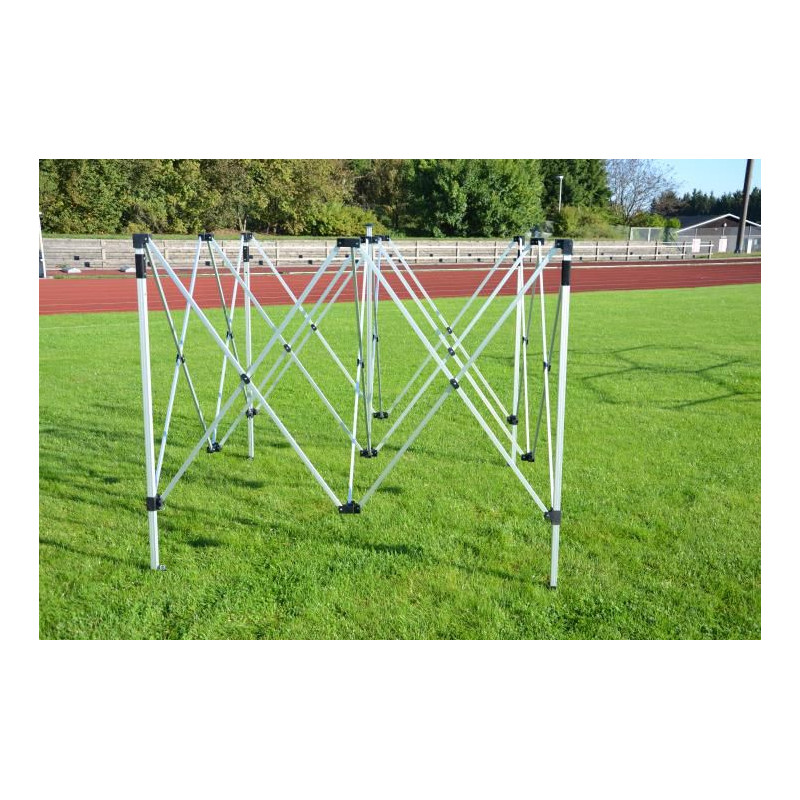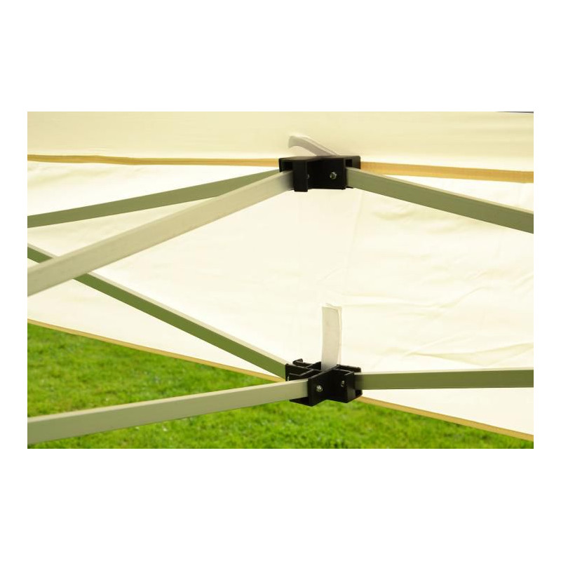 Tento záhradný stan je vhodný na záhradné oslavy, pohodlné posedenie, môžete ho využiť na firemný večierok aj na stánkový predaj. Nožnicová konštrukcia Vám zaručí jednoduché zloženie aj rozloženie stanu - stačí iba konštrukciu roztiahnuť. Záhradný stan Vás ochráni pred priamym slnečným žiarením, nepríjemným dažďom alebo iným nepriaznivým počasím. Stan je kompletne uzavretý pomocou štyroch bočných stien. Bočné steny sú k nohám pripevnené pomocou suchých zipsov a k hornej hrane konštrukcie pomocou háčikov. Nohy stanu sú teleskopicky polohovateľné a majú plastové pätky pre ukotvenie do zeme.