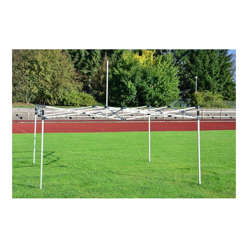 Tento záhradný stan je vhodný na záhradné oslavy, pohodlné posedenie, môžete ho využiť na firemný večierok aj na stánkový predaj. Nožnicová konštrukcia Vám zaručí jednoduché zloženie aj rozloženie stanu - stačí iba konštrukciu roztiahnuť. Záhradný stan Vás ochráni pred priamym slnečným žiarením, nepríjemným dažďom alebo iným nepriaznivým počasím. Stan je kompletne uzavretý pomocou štyroch bočných stien s oknami. Bočné steny sú k nohám pripevnené pomocou suchých zipsov a k hornej hrane konštrukcie pomocou háčikov. Nohy stanu sú teleskopicky polohovateľné a majú plastové pätky pre ukotvenie do zeme.