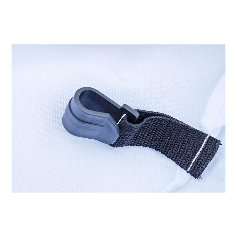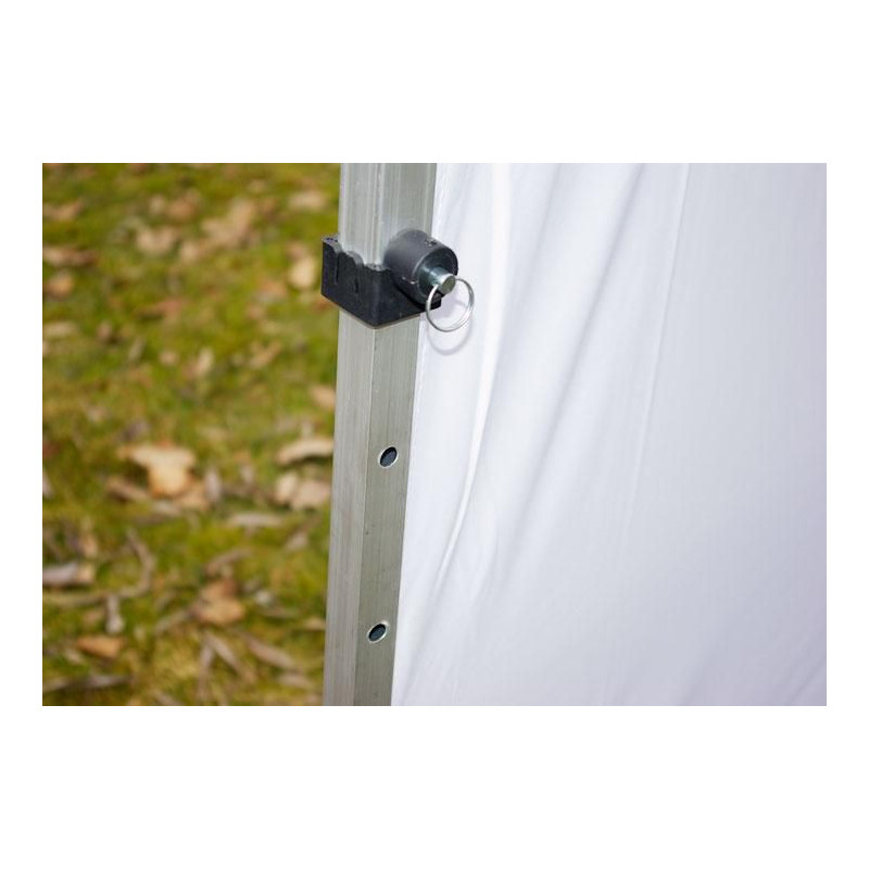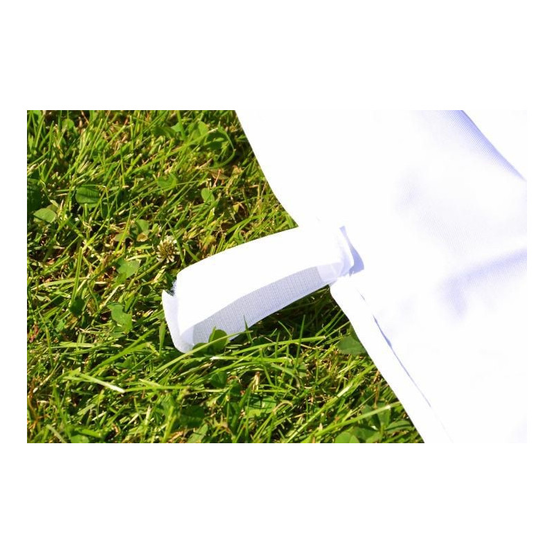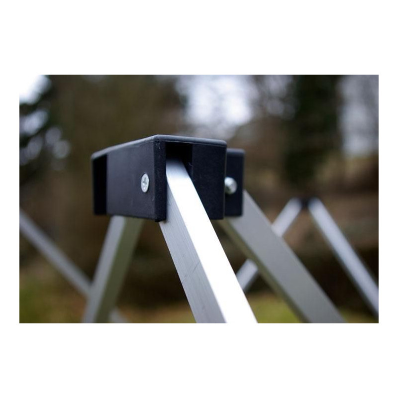 - bočné steny sú pripevnené k nohám pomocou suchých zipsov a k hornej hrane konštrukcie prostredníctvom háčikov (viď fotografie)
