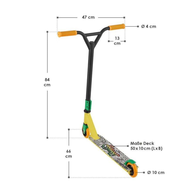 Objavte slobodu pohybu a adrenalín v každom triku! Freestyle kolobežka je ideálnou voľbou pre deti a teenagerov, ktorí milujú dobrodružstvo a chcú zažiariť v skate parku. Jeho moderný dizajn, farebné detaily a bezpečná konštrukcia z neho robia skvelý darček a každodenného spoločníka. S touto kolobežkou zažijete radosť z pohybu a posilníte sebadôveru a koordináciu svojho dieťaťa.
