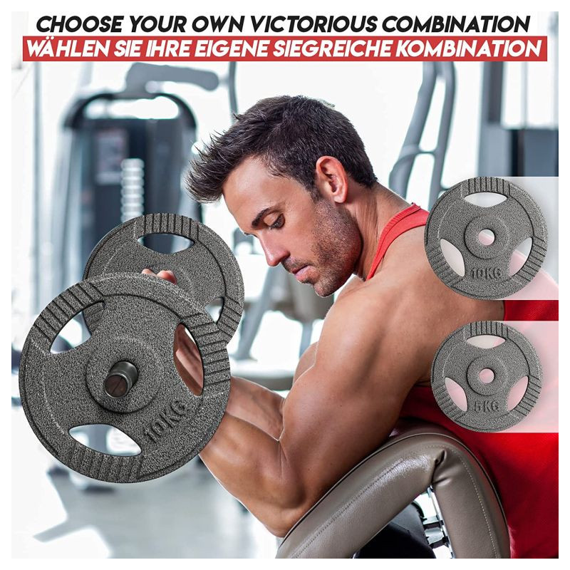 Liatinový záťažový kotúč s hmotnosťou 10 kg sa vďaka svojmu tvaru a vrúbkovaným rukovätiam ľahko uchopí a stane sa nepostrádateľnou súčasťou základnej výbavy každej domácej posilňovne. S týmito záťažovými kotúčmi a zodpovedajúcou tyčou môžete vykonávať rôzne silové cviky pre hornú aj spodnú časť tela. Závažie má otvor s priemerom 31 mm, ktorý je vhodný pre väčšinu činkových tyčí. Proces odlievania našich závaží zaručuje dlhú životnosť a odolnosť závaží.