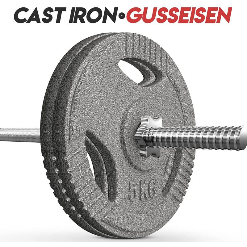 Sada liatinových záťažových kotúčov s hmotnosťou 2 x 5 kg sa vďaka svojmu tvaru a vrúbkovaným rukovätiam ľahko uchopí a stane sa nevyhnutnou súčasťou základnej výbavy každej domácej posilňovne. S týmito záťažovými kotúčmi a zodpovedajúcou tyčou môžete vykonávať rôzne silové cviky pre hornú aj spodnú časť tela. Kotúče majú otvor s priemerom 31 mm, ktorý je vhodný pre väčšinu činkových tyčí. Proces odlievania našich závaží zaručuje dlhú životnosť a odolnosť závaží.