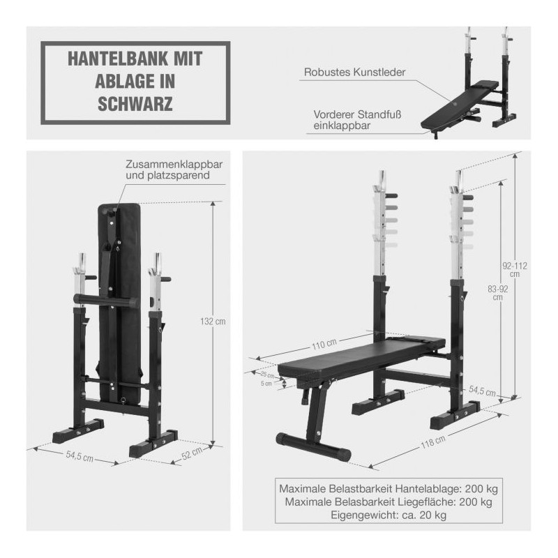 - max. nosnosť stojana na činky vrátane telesnej hmotnosti: 200 kg