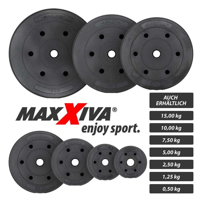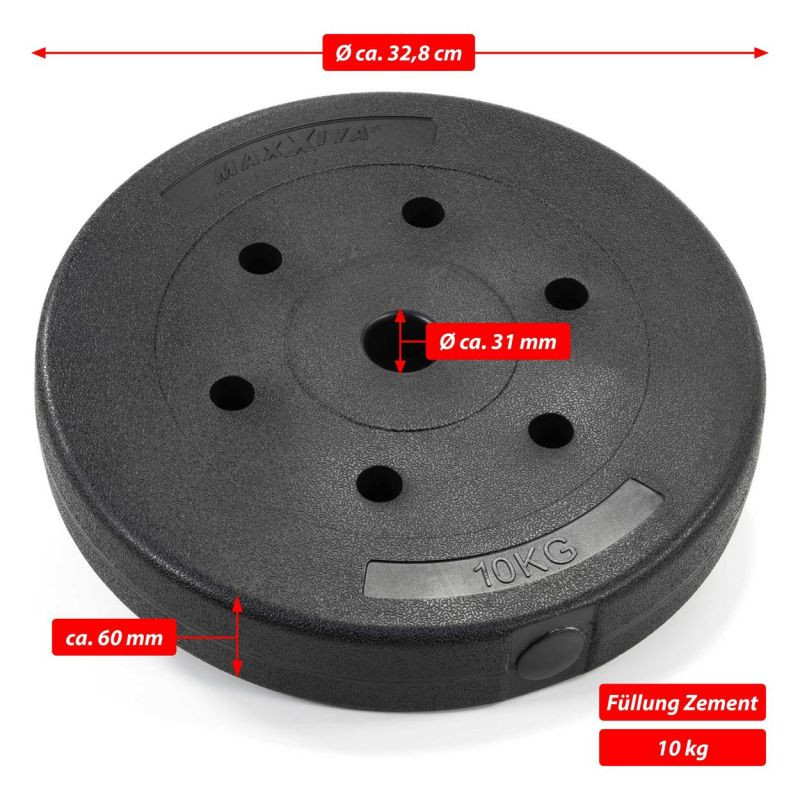 Vnútorný priemer je štandardný, a preto sa hodí pre všetky štandardné dlhé, krátke a lakťová tyče. Záťažové dosky z cementovej výplne a robustného plastového plášťa. Šetrné k podlahe, šetrné k materiálu a tiché pri pokladaní. Závažia sú vhodné pre všetky činky s držiakom kotúča Ø 30 / 31 mm. Ideálne do posilňovne aj na doma.