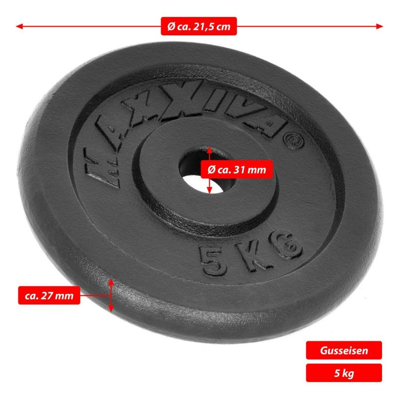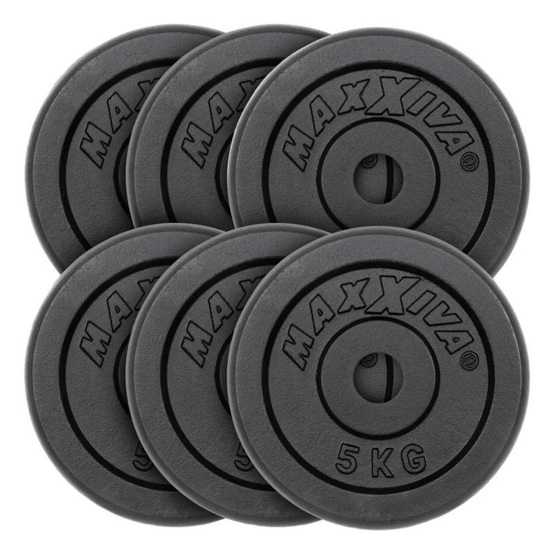 Či už sa jedná o drepy, benchpress, mŕtvy ťah alebo zhyby, záťažové dosky sú ideálne pre váš domáci tréning. Odlievané záťažové dosky sú mimoriadne odolné a vďaka svojmu zhotoveniu zostávajú rozmerovo stabilné aj pri náročnom používaní. Materiál sa pri nasadzovaní nepoškriabe tak ľahko ako napríklad závažia v plastovom puzdre. Liatinové dosky sa používajú v kulturistike, pri silovom tréningu, crossovom tréningu a v oblasti rehabilitácie a fitness. Činky sú v súkromnej posilňovni nevyhnutné. Kotúče s hmotnosťou 5 kg s priemerom otvoru 30/31 mm majú bežnú štandardnú veľkosť, a preto sa hodia na všetky bežné činkové tyče s priemerom 30 mm. To zabraňuje prešmykovaniu alebo narážaniu kotúčov počas tréningu.