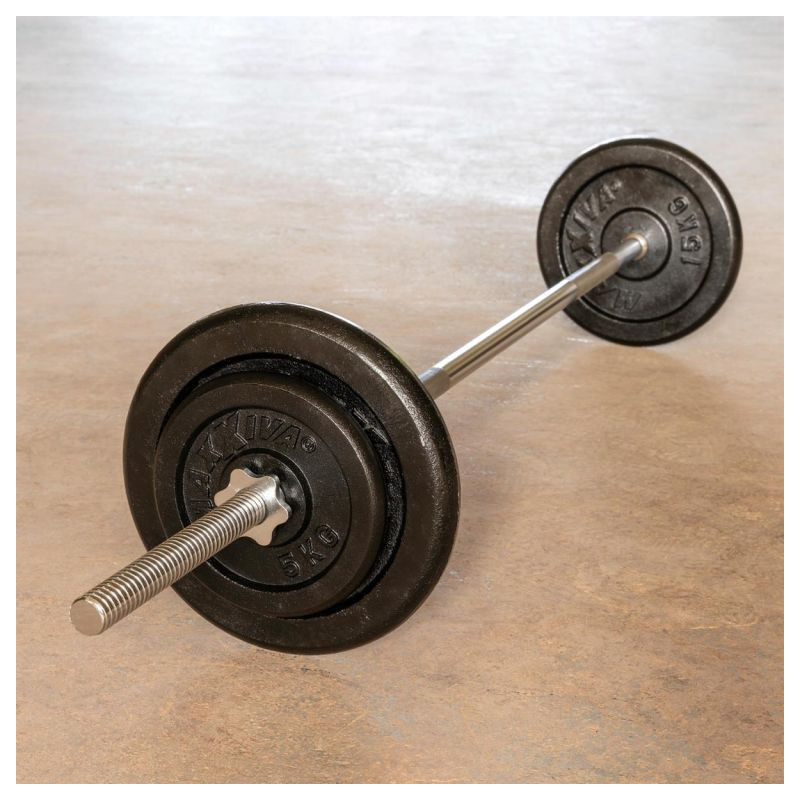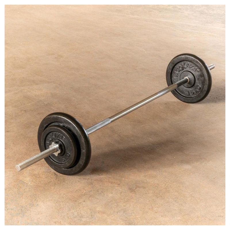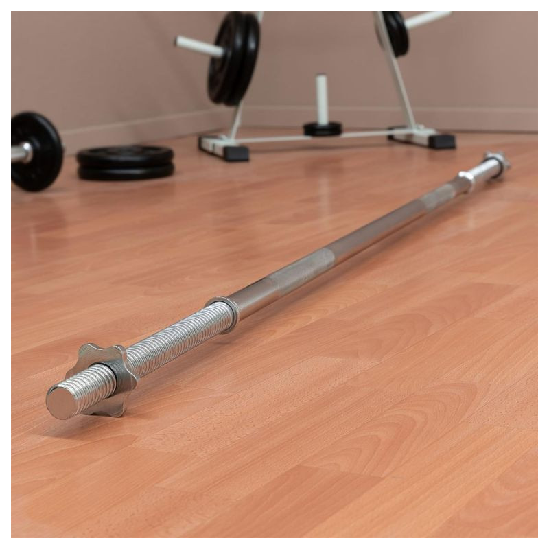 Podperná tyč na činky MAXXIVA® je vhodná pre všetky komerčne dostupné záťažové dosky s 3 cm držiakom. Pultová doska je upevnená poistným krúžkom, ktorý zabraňuje skĺznutiu závažia počas pohybu. Rýchlovýmenné hviezdicové zámky bezpečne upevňujú závažia na činku a zaručujú pohodlnú výmenu závažia. Rukoväte s krížovým závitom na tyči umožňujú bezpečné uchopenie tyče.