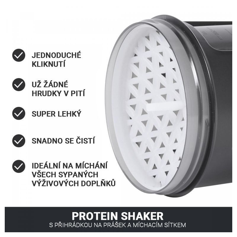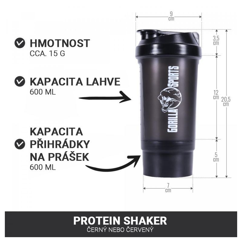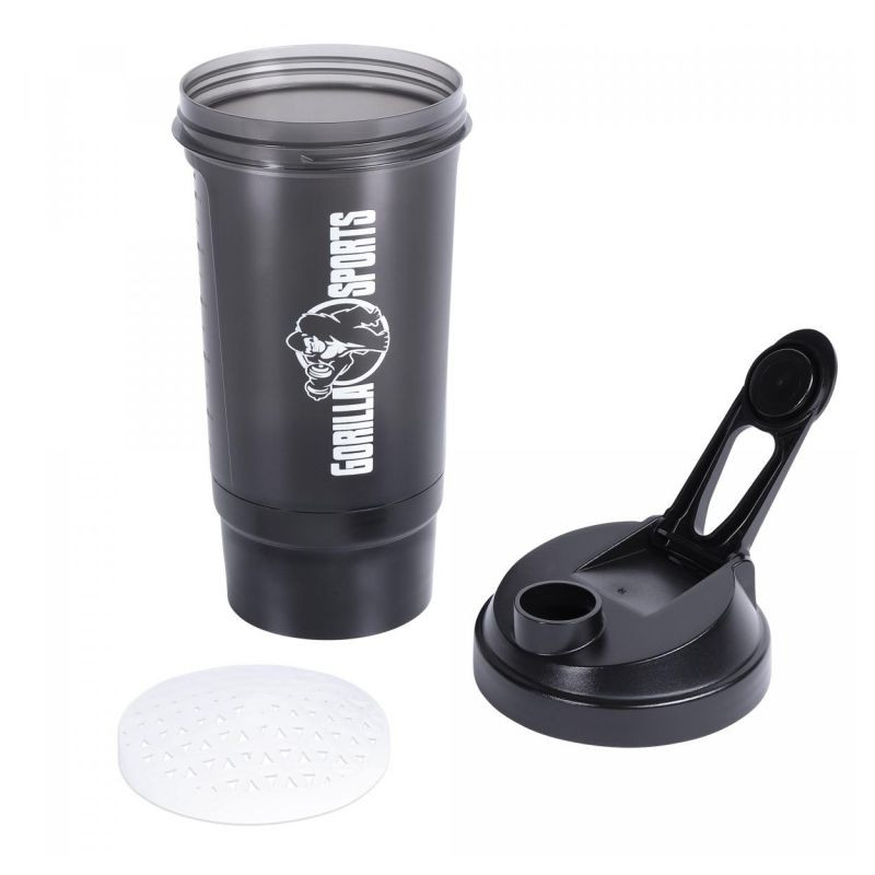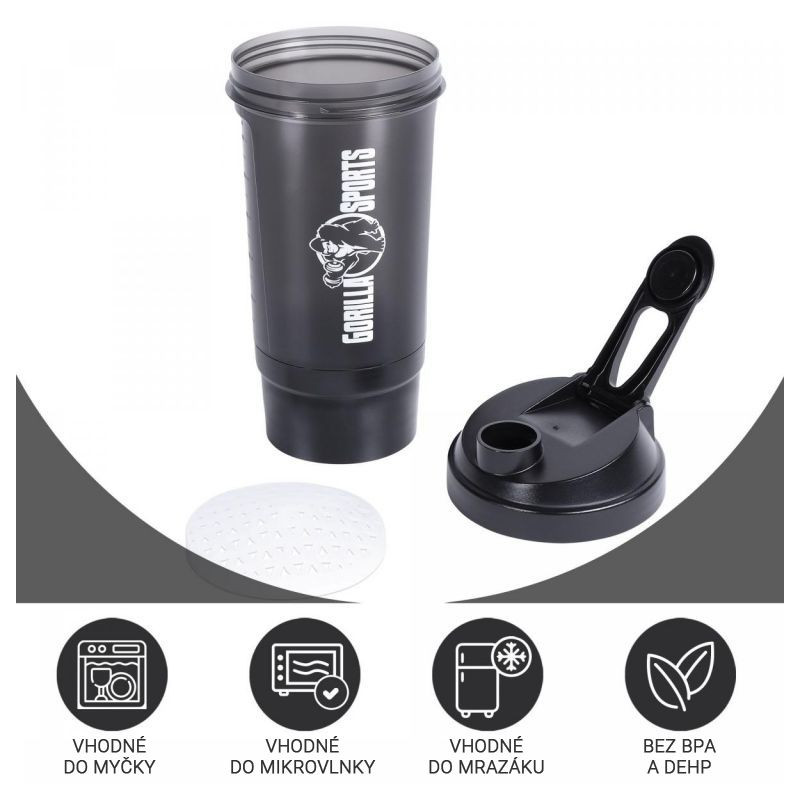 Proteínový shaker Gorilla Sports 500 ml s priehradkou