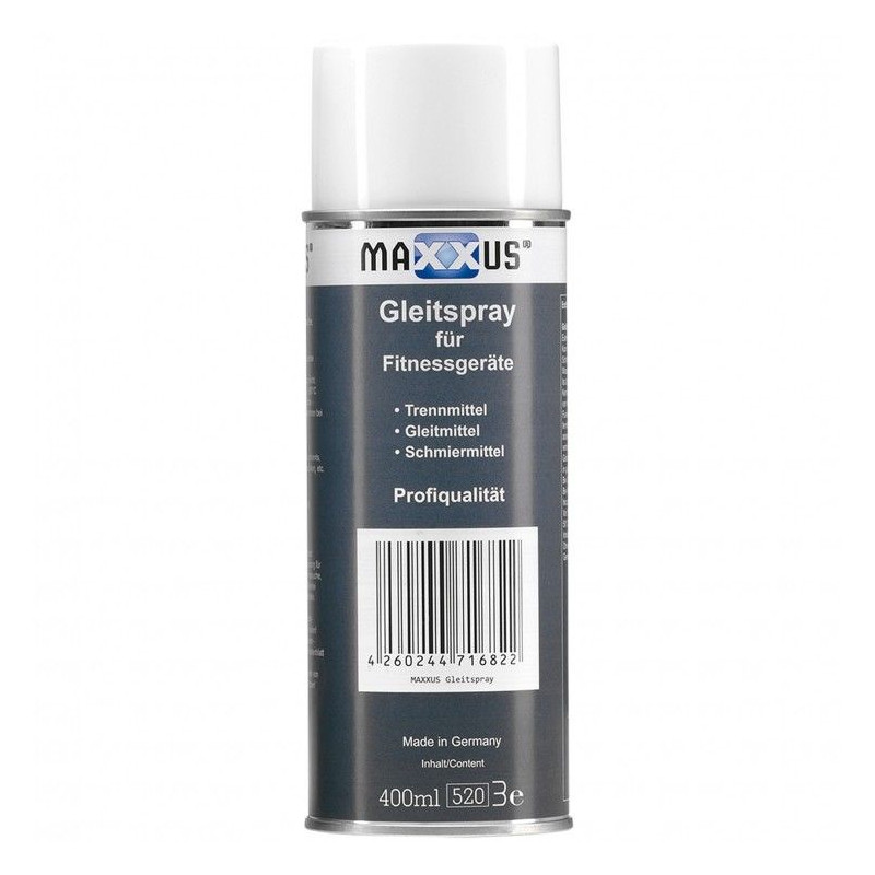 Vysoko kvalitný mazací sprej je možné použiť univerzálne. Zvyšuje životnosť prvkov, ktoré majú byť udržiavané, ako je motor, klzná lišta atď. Ideálna na mazanie posuvných rúrok alebo koľajníc na crossových trenažéroch a vodiacich rúrok na posilňovacích strojoch. je vhodný pre cardio vybavenie ako je crossový trenažér, ergometer, veslárske trenažéry, bicykle. Tréningové vybavenie, posilňovne, stojany, multi-pressové stroje. Ošetrujúci prípravok MAXXUS je možné použiť na mnoho plastových povrchov, vždy však odporúčame vopred otestovať vhodnosť. Okrem toho je mazací sprej vhodný aj ako montážna pomôcka pre hadicové spoje.