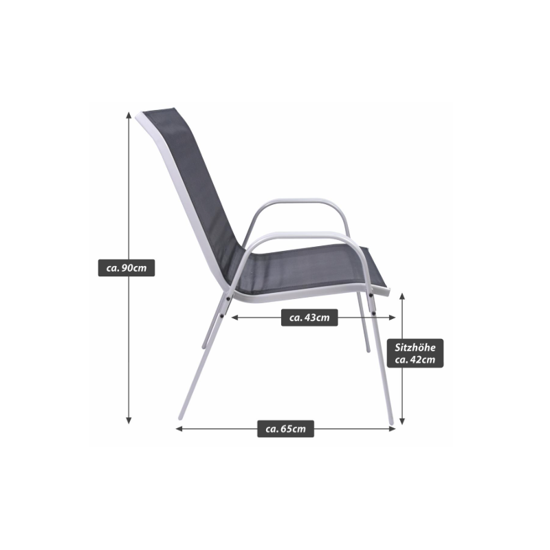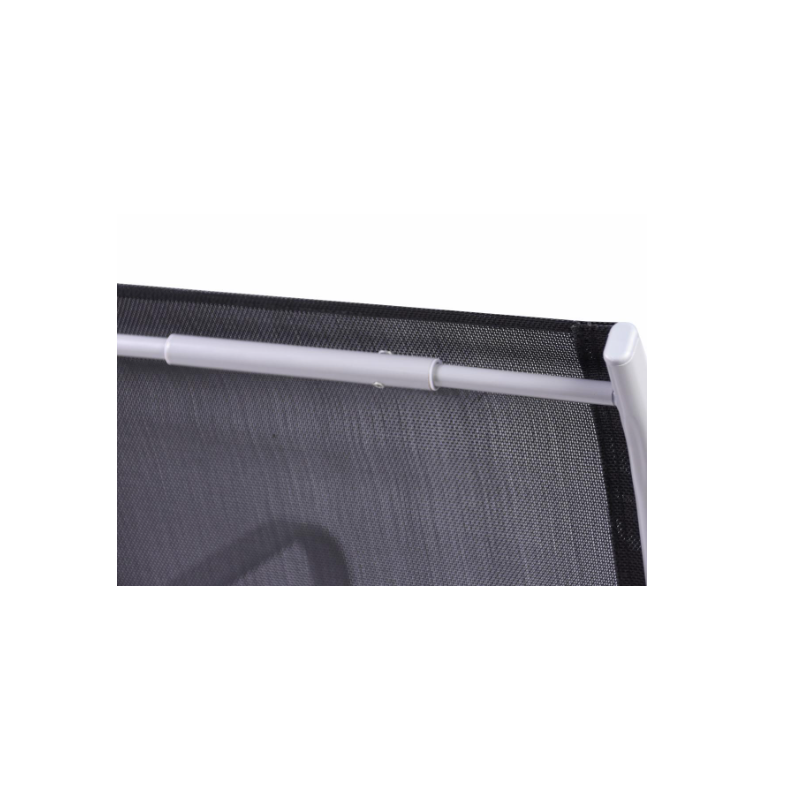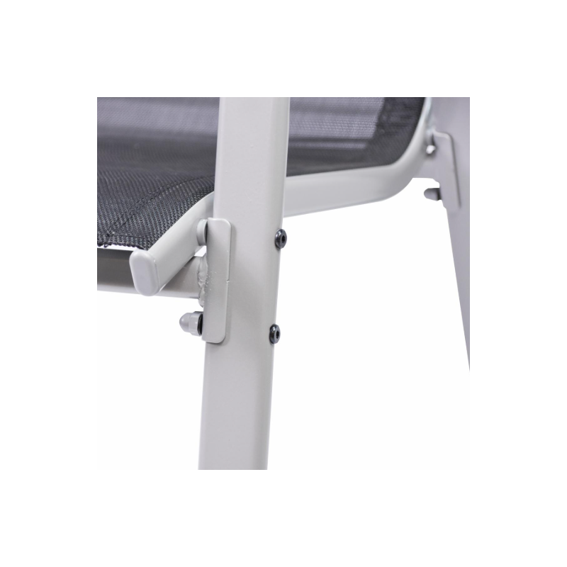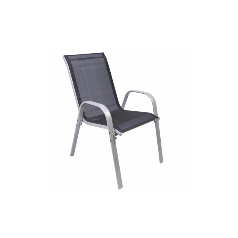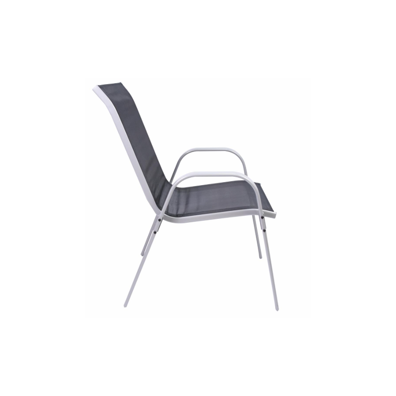 Stolička BARI kombinuje pevný oceľový rám s elastickou tkaninou – materiálmi, ktoré sú odolné voči poveternostným vplyvom a ľahko sa udržiavajú.