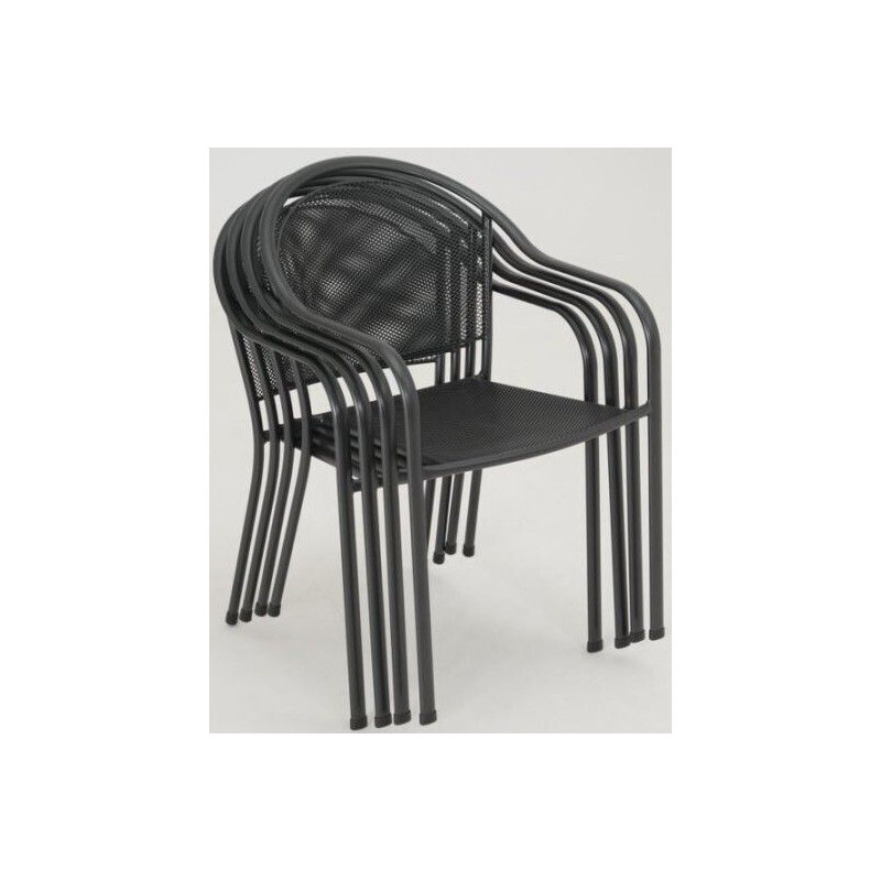 Kreslo je vyrobené z kvalitného kovu – tahokovu, ktorý je povrchovo upravený pre maximálnu odolnosť voči poveternostným vplyvom. Vďaka nízkej hmotnosti a možnosti stohovania je ideálne aj pre menšie priestory. Nosnosť až 120 kg zaručuje bezpečné použitie.
