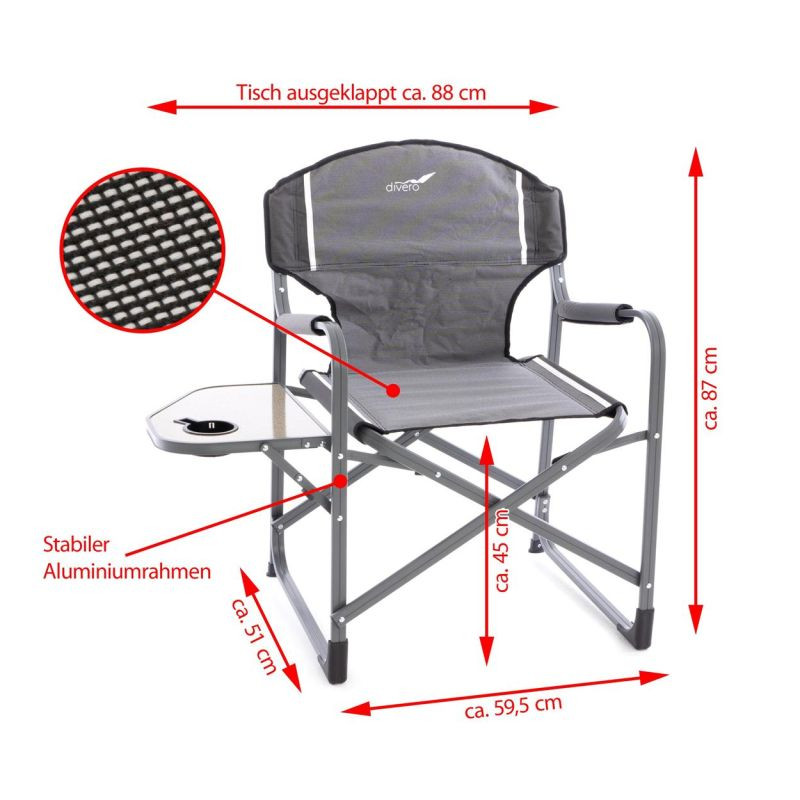 Skladacia stolička je ideálna či už kempujete, rybárčite, využijete ju aj na záhrade, na piknikovom výlete s deťmi, na futbale Vášho domáceho klubu alebo na festivale. Sklopný stolík na pravej strane má držiak nápojov, takže sa môžete najesť bez nutnosti ďalšieho stola.