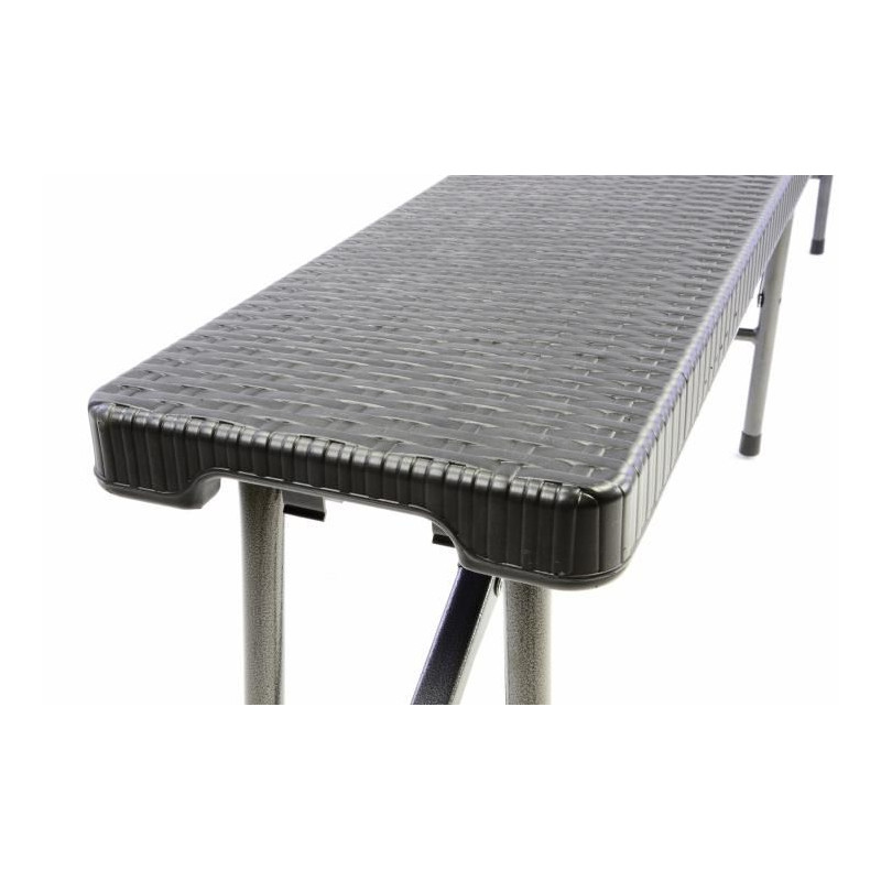 Čierne sklopné lavice s elegantným designom ratanového vzhľadu upútajú Vašu pozornosť. Sú postavené behom okamžiku, lavice si môžete vziať so sebou na párty - vďaka integrovanému úchytu môžete lavice ľahko transportovať. Pre prípad, že lavice momentálne nepotrebujete, môžete ich úsporne uskladniť. Materiál je nenáročný na údržbu a dá sa ľahko umyť. Lavice sú vhodné pre použitie v interiéri aj v exteriéri. Vašim oslavám tak nestojí nič v ceste.