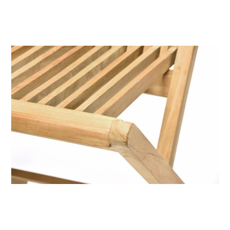 Túto elegantnú a zároveň praktickú skladaciu stoličku oceníte všade, kde sa stretávate s nedostatkom miesta. Hodí sa najmä na balkóny, terasy a záhrady, kde si môžete s rodinou a priateľmi užívať príjemné letné večery. Je zhotovená z odolného teakového dreva a aj v zime ju môžete nechať stáť vonku. Je veľmi rýchlo zostaviteľná a vďaka zaobleným hranám a úzkym latkám je veľmi pohodlná aj bez látkového sedáka. Stolička je skladacia a umožňuje tak jednoduché uloženie. Jedná sa o produkt, ktorý vás nadchne už porovnaním pomeru kvality a ceny.