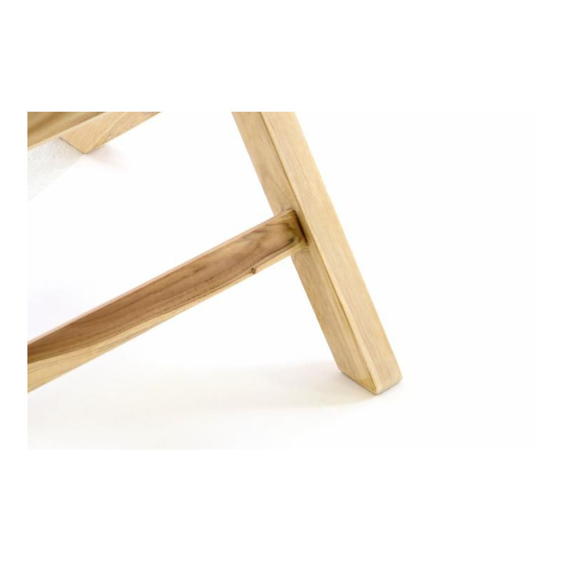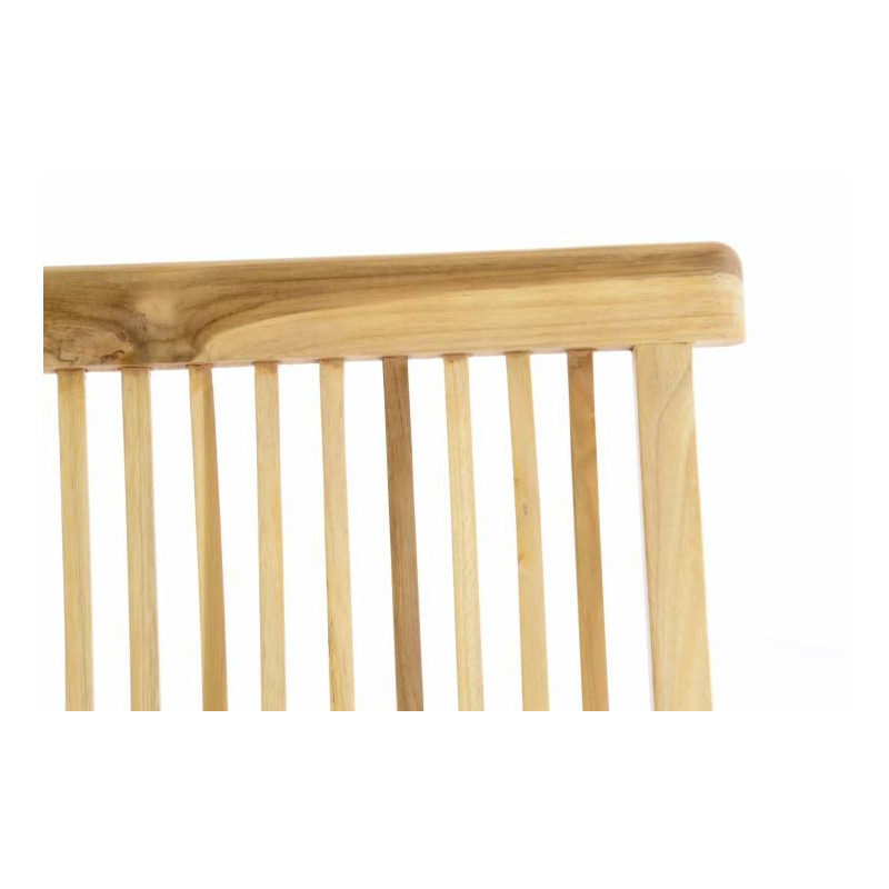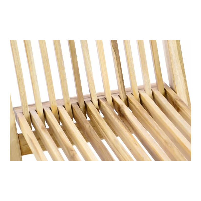 Táto elegantná a praktická skladacia stolička je ideálna na balkón, terasu, záhradu a všade tam, kde je malý priestor. Je vyrobená z teakového dreva, ktoré je vysoko kvalitné. Toto drevo je charakteristické svojím početným žilkovaním a obsahom éterických olejov, ktoré mu zaručujú odolnosť proti vetru a ďalším vplyvom počasia. Teak je pre svoju vynikajúcu odolnosť obľúbený už po stáročia aj v lodnom staviteľstve. Vďaka zaobleným hranám a úzkym lištám je stolička veľmi pohodlná aj bez vankúša. Stolička je skladacia a umožňuje jednoduché uskladnenie.