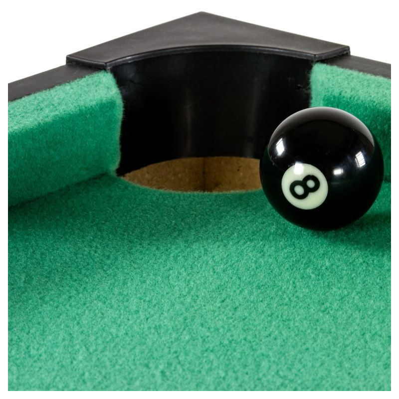 Tento minibiliard môžete mať kdekoľvek so sebou! Na dovolenke, v krčme, v detskej izbe alebo v kancelárii - možností je neúrekom. Vďaka kompaktným rozmerom sa dá ľahko uskladniť a je vždy pripravený na použitie. Maximálna radosť z hry pre mladých aj veľkých pri každej príležitosti.