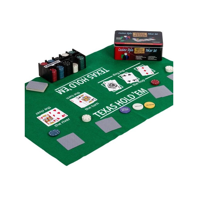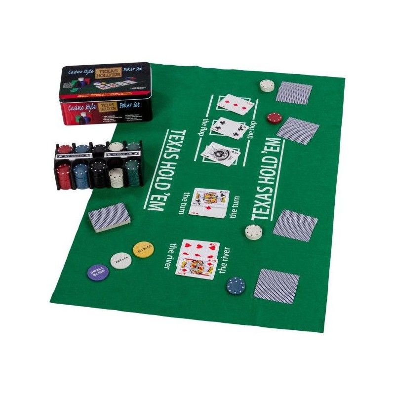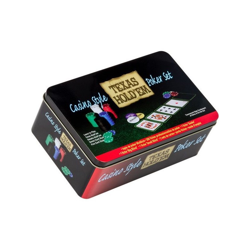 Jednoduchý klasický pokerový set s 200 žetónmi s moderným dizajnom. Set je ideálny pre domáce priateľskú partičku pokru. Celý set je umiestnený v odolnej kovovej škatuľke s potlačou. Set obsahuje všetko, čo potrebujete pre domáce hranie.