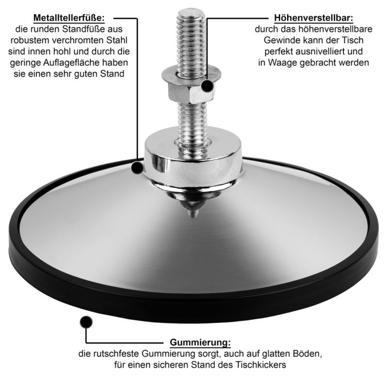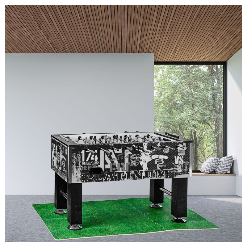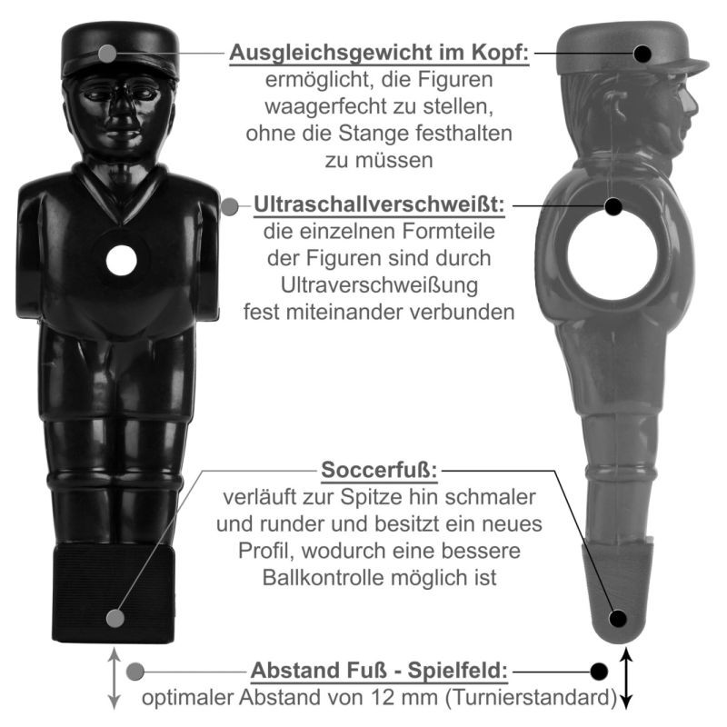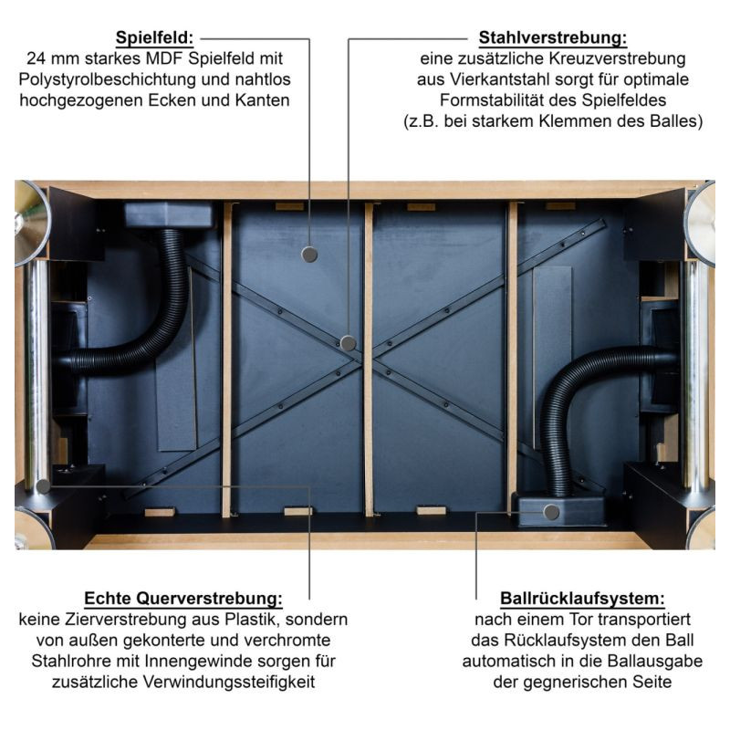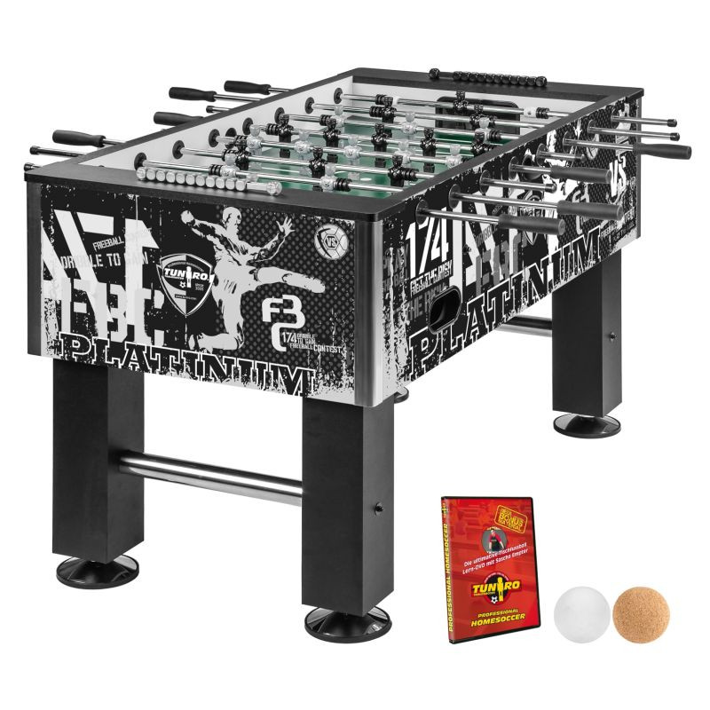 Značka TUNIRO je známa od svojho založenia v roku 2005 profesionálnymi domácimi futbalmi a najvyššou radosťou z hry a rovnako tak pre vynikajúcu cenu v pomere k výkonu. Pri vývoji všetkých komponentov je venovaná pozornosť dodržiavaniu štandardov turnaja s ohľadom na bezpečnosť a hrateľnosť. Tiež bolo zapracované know-how vysoko postavených hráčov futbalu Bundesligy. Okrem toho sú všetky stolné futbaly TUNIRO zodpovedajúcim spôsobom certifikované podľa BTFV (Bayerischer Tischfußballverband). Model "PRO" z radu TUNIRO má hmotnosť 110 kg a je vybavený výškovo nastaviteľnými pogumovanými nohami. Rukoväte sú perfektne ergonomické a rukoväte sú protišmykové aj pre potiacu sa ruku. Hracie tyče sú bezpečné a nedochádza tu k nechcenému priškripnutiu prsta medzi rukoväť a hranu futbalu. Na vylúčenie pretlačenia hracieho poľa, boli už 24 mm hrubé hracie polia navyše zosilnené pomocou železného kríža zo spodnej strany. Okrúhle kovové tanierové nohy sú vo vnútri duté, vzhľadom na malú opornú plochu majú veľmi dobrú stabilitu.