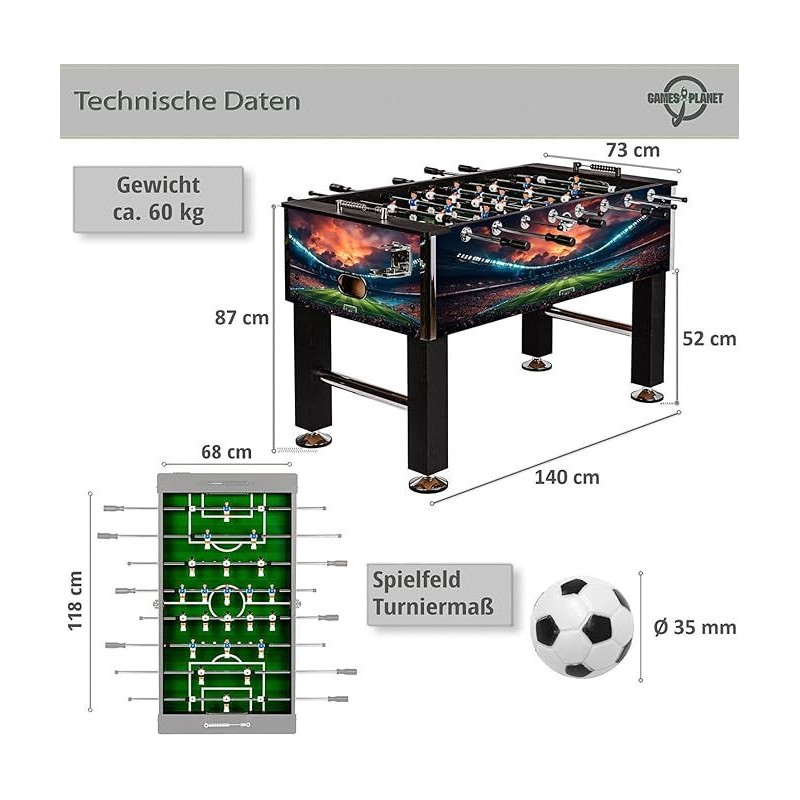 Oživte každý večer skvelou zábavou a prineste si domov atmosféru skutočného turnaja. Moderný dizajn s motívom štadióna zaujme na prvý pohľad a zvýšené rohy zaručia plynulý priebeh hry bez zbytočných prerušení. Ideálne pre rodinné oslavy aj priateľské zápasy.