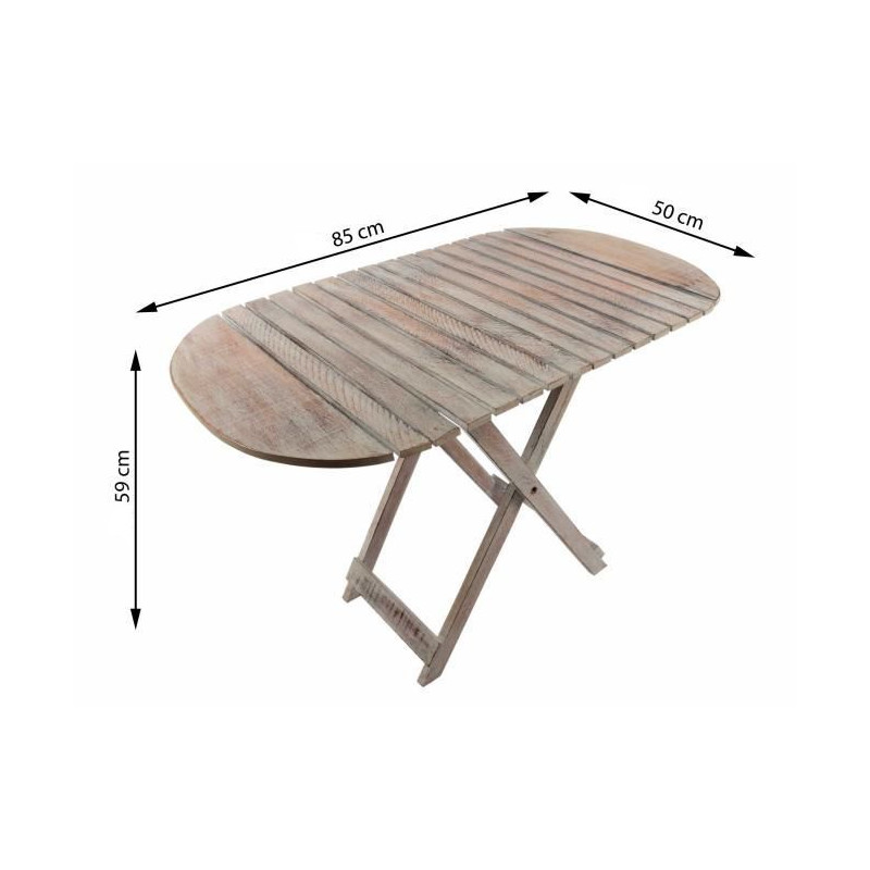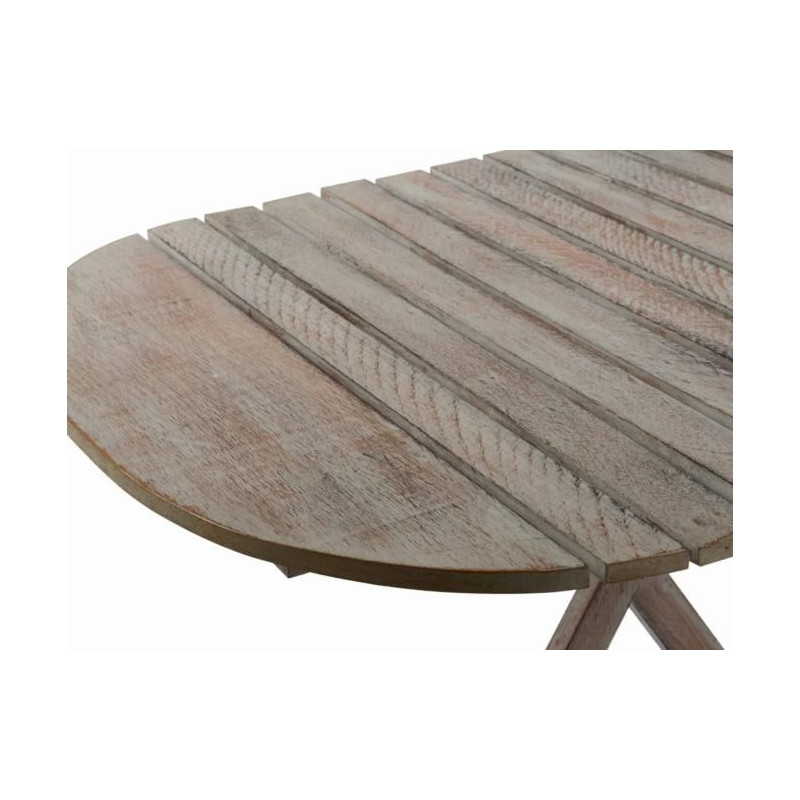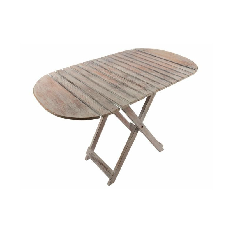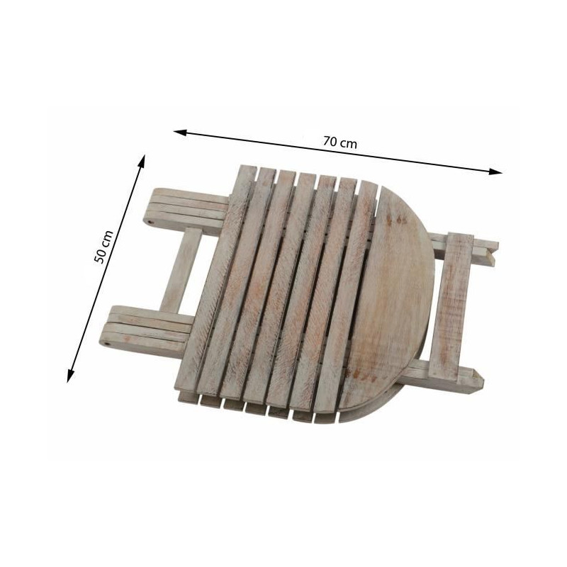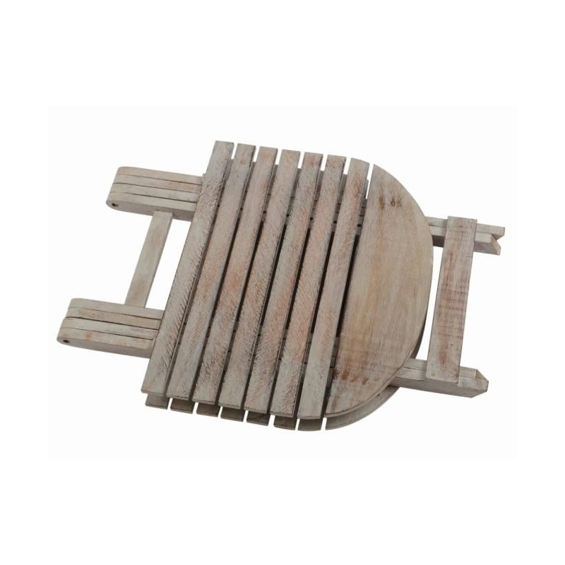Tento ľahký skladací stôl môžete použiť ako kvetinový stôl, detský stôl alebo jednoducho ako odkladací stolík na nápoje, knihy alebo časopisy. Stolík je rýchlo pripravený na použitie v niekoľkých jednoduchých krokoch, ľahko sa zloží a uschová. Pri spracovaní dreva bola použitá biela technika. V dôsledku toho je žilkovanie obzvlášť dobré a zdôrazňuje rustikálne kúzlo. Stôl je vyrábaný ručne, a preto je každý kus originál.