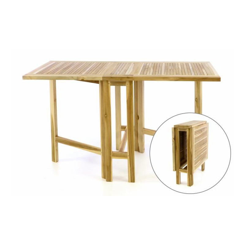 Vysoko kvalitný sklopný záhradný stôl z neupraveného teakového dreva, presne a čisto spracovaný. Tento obdĺžnikový sklopný stolík v modernom designe je ideálny na záhradu, zimnú záhradu, terasu, k bazénu alebo na balkón. Je vyrobený z masívneho teaku a je veľmi stabilný.