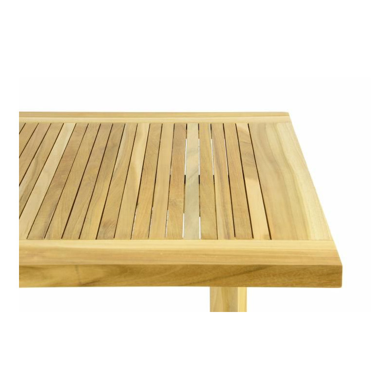 Neupravené teakové drevo po určitom čase získa známu striebornosivú patinu. Ak sa tomu chcete vyhnúť, mali by ste svoj stôl ošetrovať teakovým olejom, ktorý je takisto k dispozícii v našom obchode.
