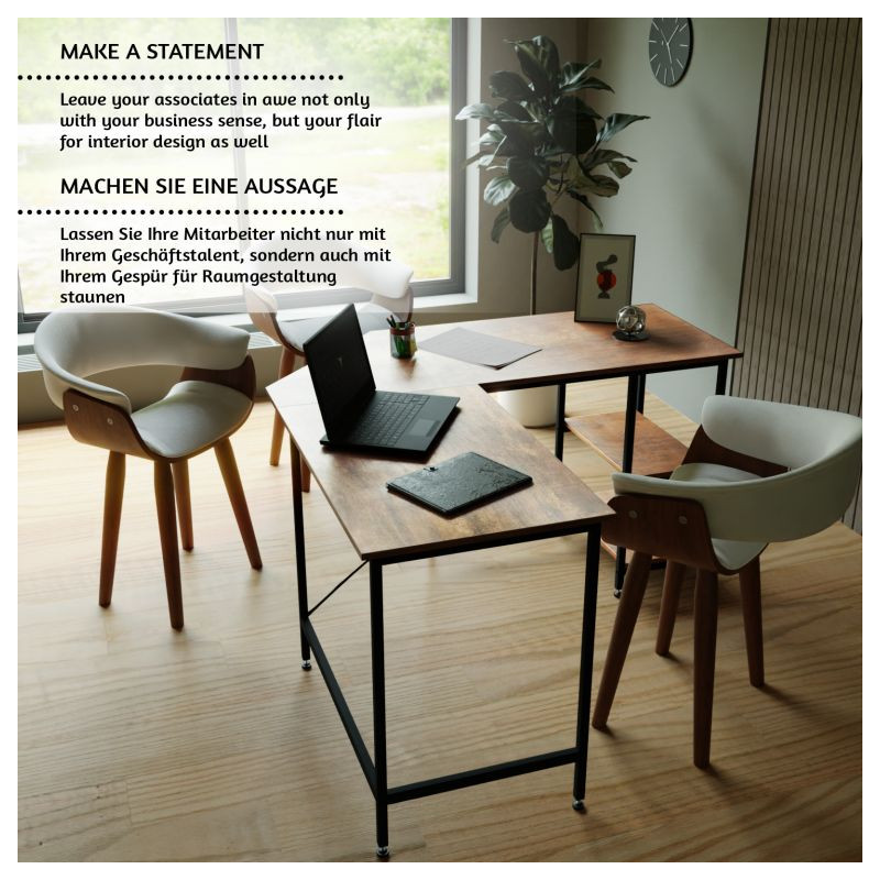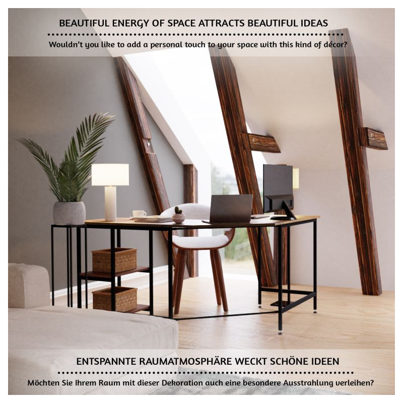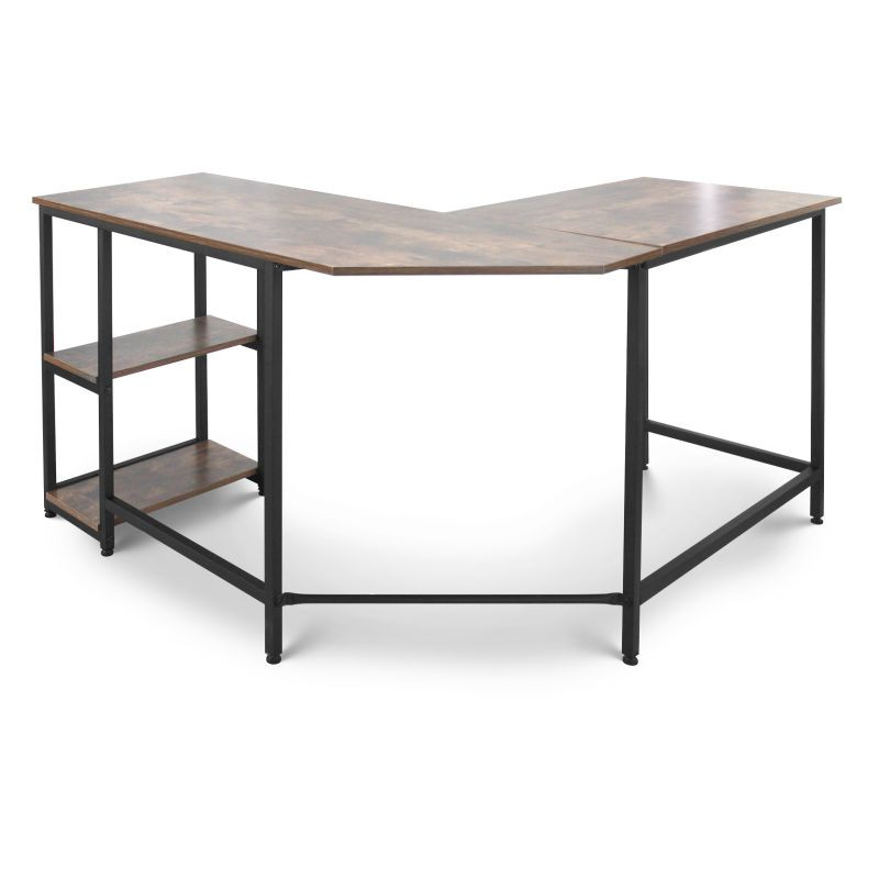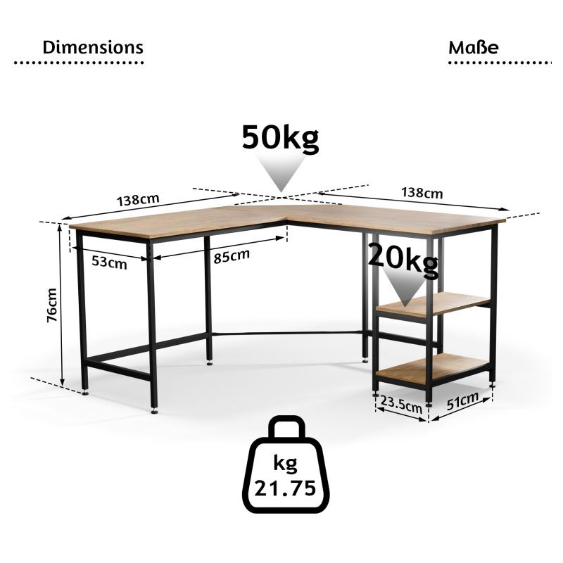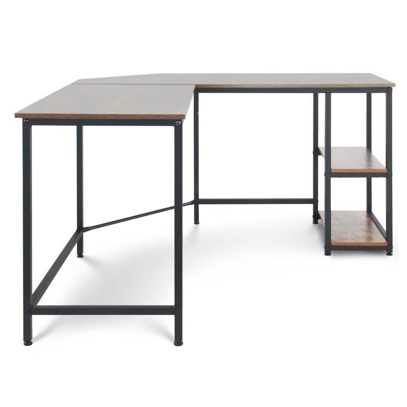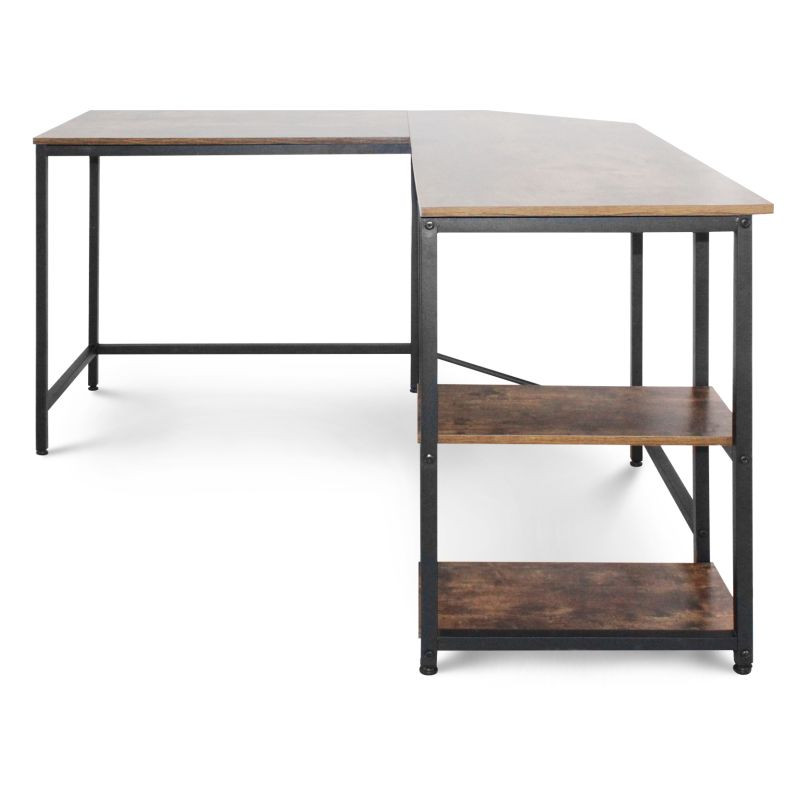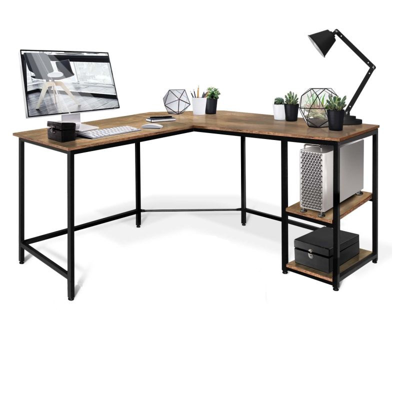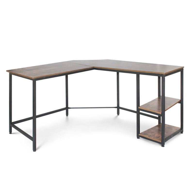 Tento počítačový pracovný stôl kombinuje odvážnu eleganciu kovového rámu s prirodzeným pôvabom rustikálnej hnedej dosky pripomínajúcej drevo. Predstavuje dokonalú kombináciu estetiky a funkčnosti. Náš všestranný písací stôl má dve priestranné pracovné plochy, dve bočné police a praktickú priehlbinu v rohu, do ktorej môžete uložiť všetky káble mimo dohľad. Rohový písací stôl má veľkorysé rozmery, takže na neho môžete ľahko umiestniť počítač, všetko súvisiace vybavenie a príslušenstvo, a napriek tomu na ňom udržať poriadok.