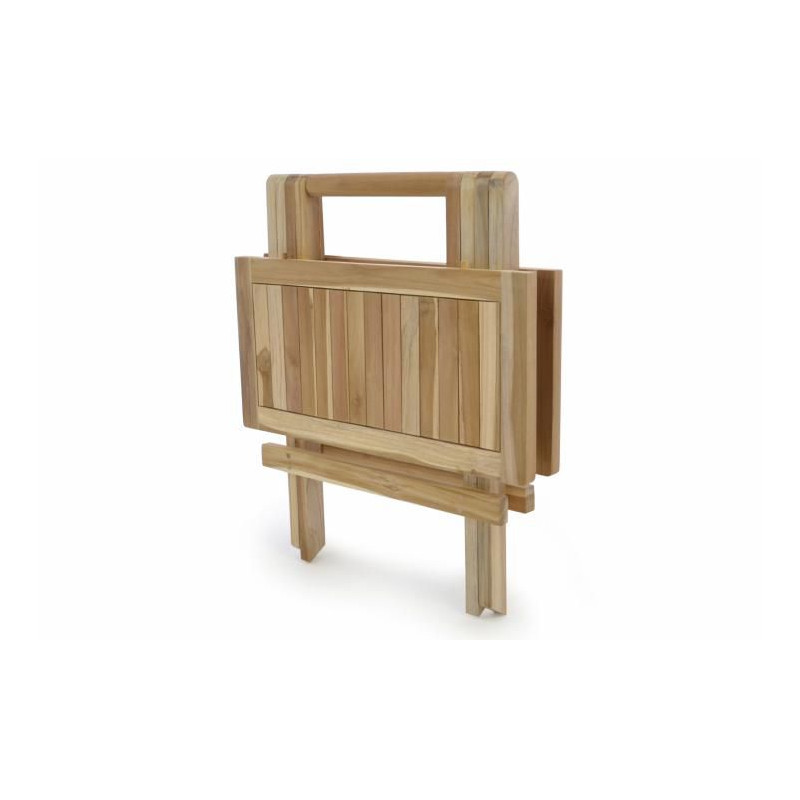 Praktický nielen záhradný skladací stolík vyrobený z vysoko kvalitného teakového dreva. Stôl oceníte predovšetkým na záhrade, terase alebo balkóne, ale určite aj v interiéri, kde sa bude hodiť ako odkladací alebo dekoračný stôl.