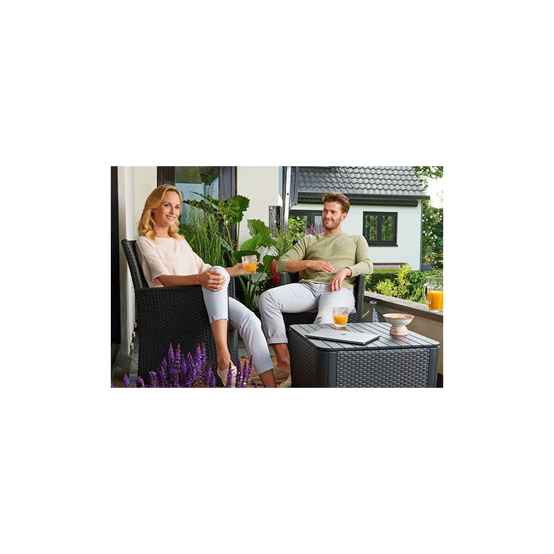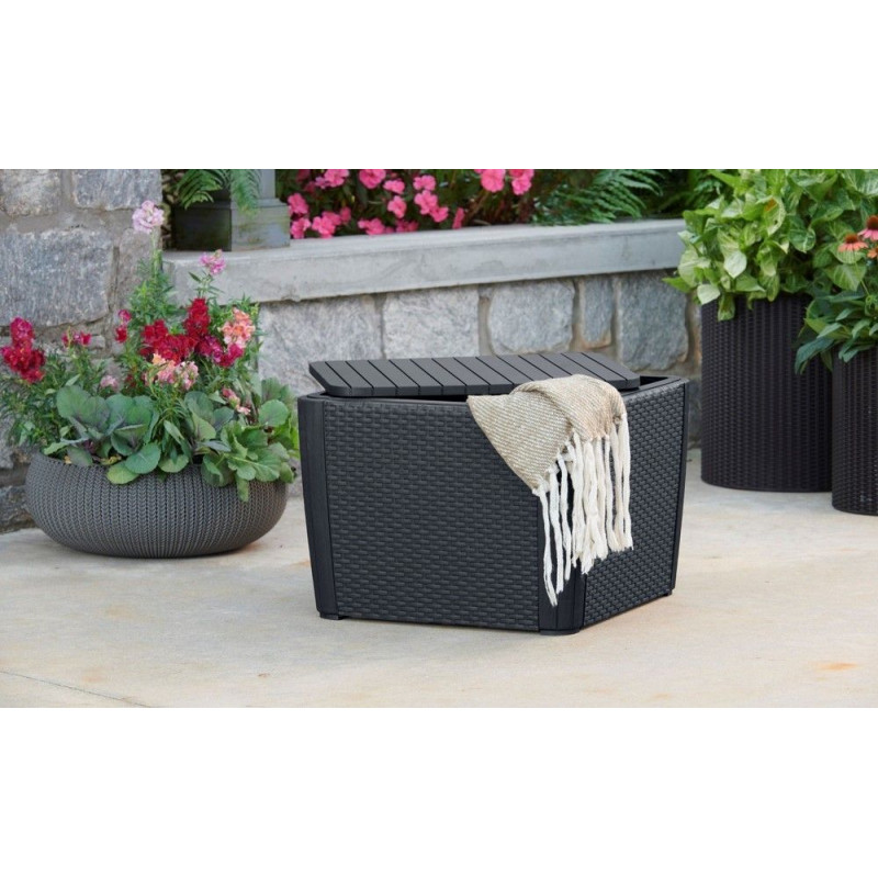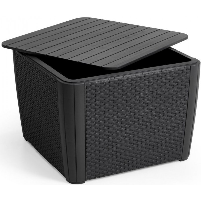 Ide o stôl, ktorý navyše slúži ako úložný box. Ľahká a stabilná konštrukcia nábytku sa skvele hodí do exteriéru aj interiéru. Výrobok je vysoko odolný proti UV lúčom a poveternostným vplyvom. Veľkou výhodou je aj jednoduchá údržba, ľahké zostavenie a manipulácia.