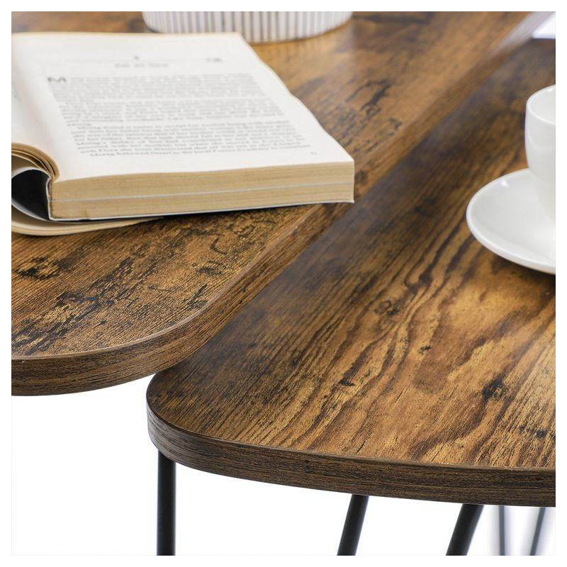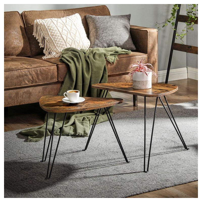 Set dvoch odkladacích stolíkov VASAGLE v rustikálnej hnedej a čiernej farbe prináša do vášho interiéru jedinečný industriálny šarm. Vďaka nadčasovému dizajnu sa hodí do obývacej izby, spálne i jedálne a ponúka flexibilné využitie ako nočné stolíky, príručné stolíky či súčasť konferenčnej zostavy.