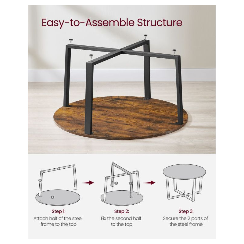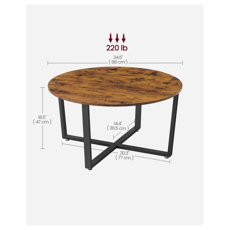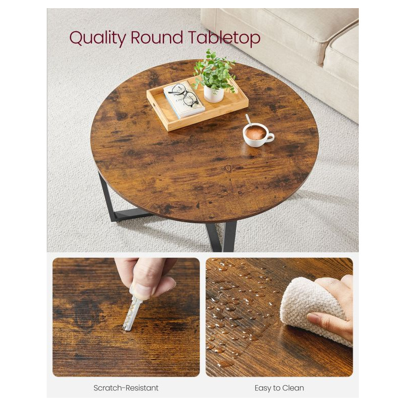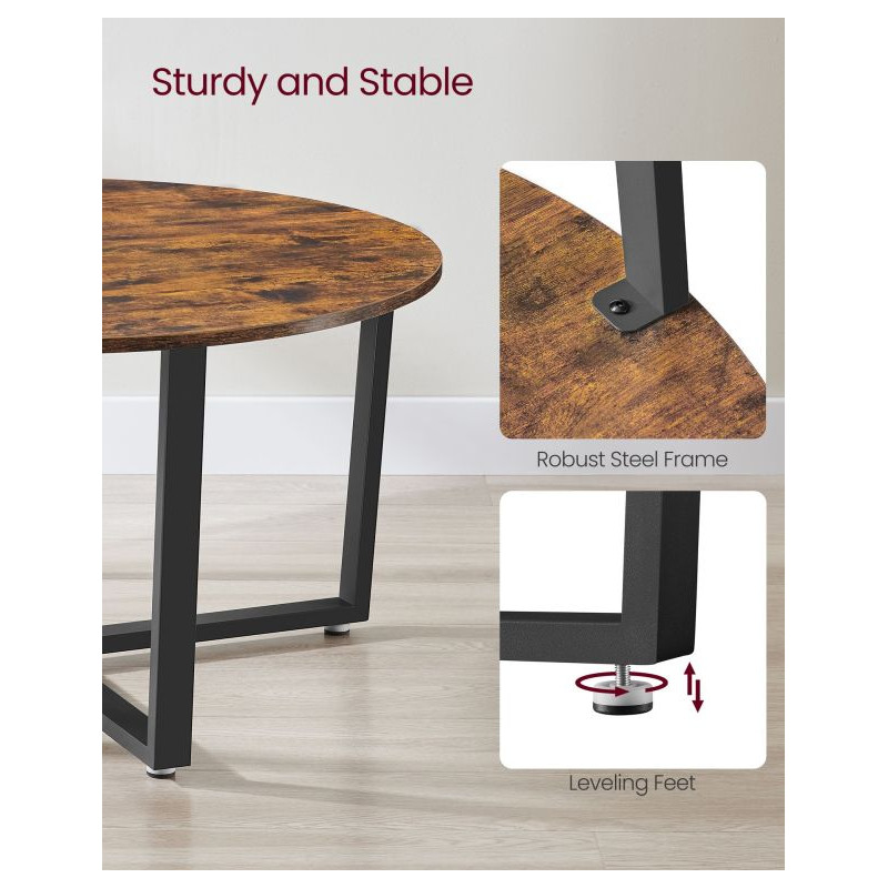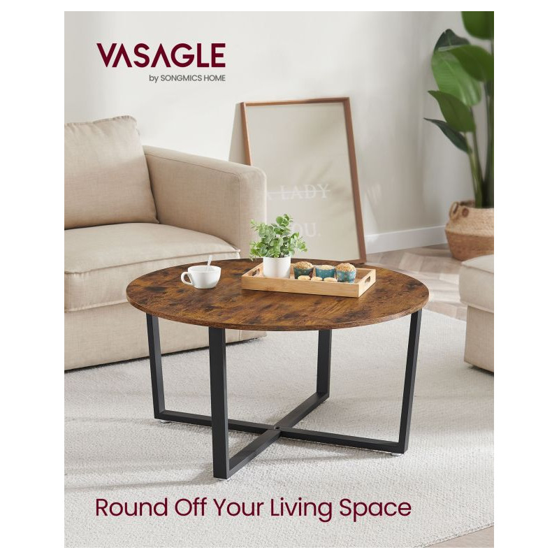 Vdýchnite svojej obývačke nový šmrnc s okrúhlym konferenčným stolíkom VASAGLE v industriálnom štýle. Kombinácia rustikálnej hnedej dosky a čiernej kovovej konštrukcie pôsobí moderne, elegantne a pritom útulne. Jeho priestranný priemer 88 cm ponúka dostatok miesta na občerstvenie, dekorácie aj pohodové chvíle s priateľmi.