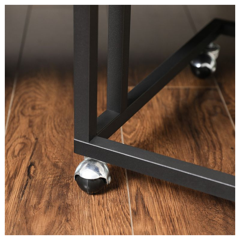 Stabilná kovová konštrukcia unesie až 25 kg a zaisťuje dlhú životnosť. Vďaka štyrom kolieskam sa stolík ľahko premiestňuje, a pokiaľ ho chcete nechať na mieste, jednoducho použijete nastaviteľné nôžky. Montáž je rýchla a zvládne ju skutočne každý. Skvelá voľba pre tých, ktorí majú radi štýl a praktickosť v jednom.