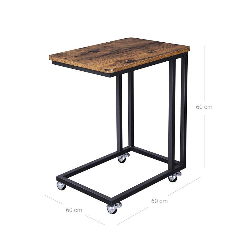 Hľadáte stolík, ktorý prepojí štýl s praktickosťou? VASAGLE ponúka rustikálne hnedé drevo v kombinácii s matne čiernym oceľovým rámom. Vďaka kompaktným rozmerom a štyrom kolieskam sa ľahko presúva a hodí sa do obývačky, spálne aj na balkón. Či už pre kávu, knihy alebo raňajky do postele – tento stolík vám umožní užívať si pohodlie bez kompromisov.