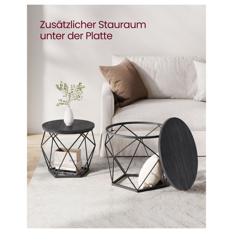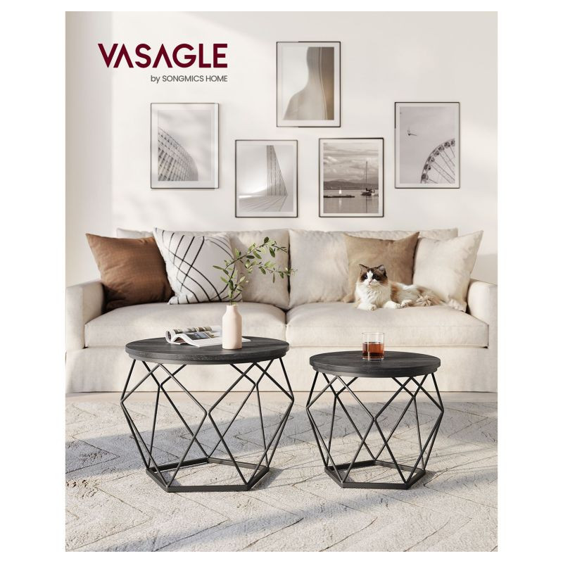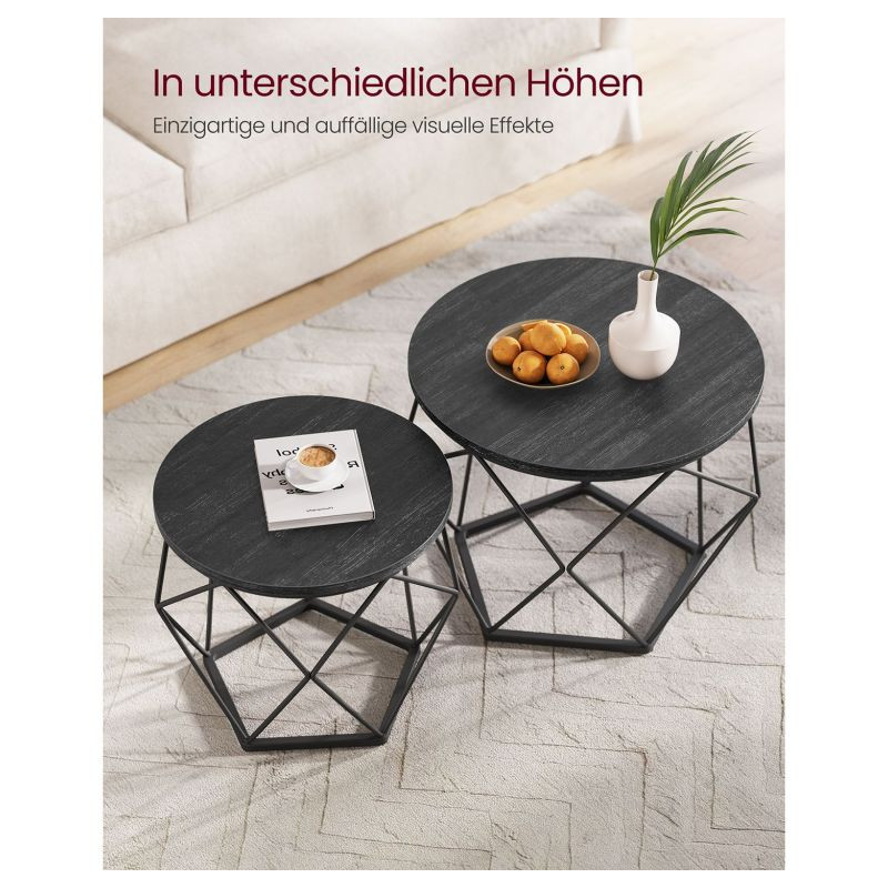 Vytvorte útulný a funkčný priestor s touto sadou dvoch konferenčných stolíkov v elegantnej čiernej farbe. Geometrický dizajn podstavca dodá vášmu domovu moderný nádych a stane sa štýlovým doplnkom na každodenné použitie.