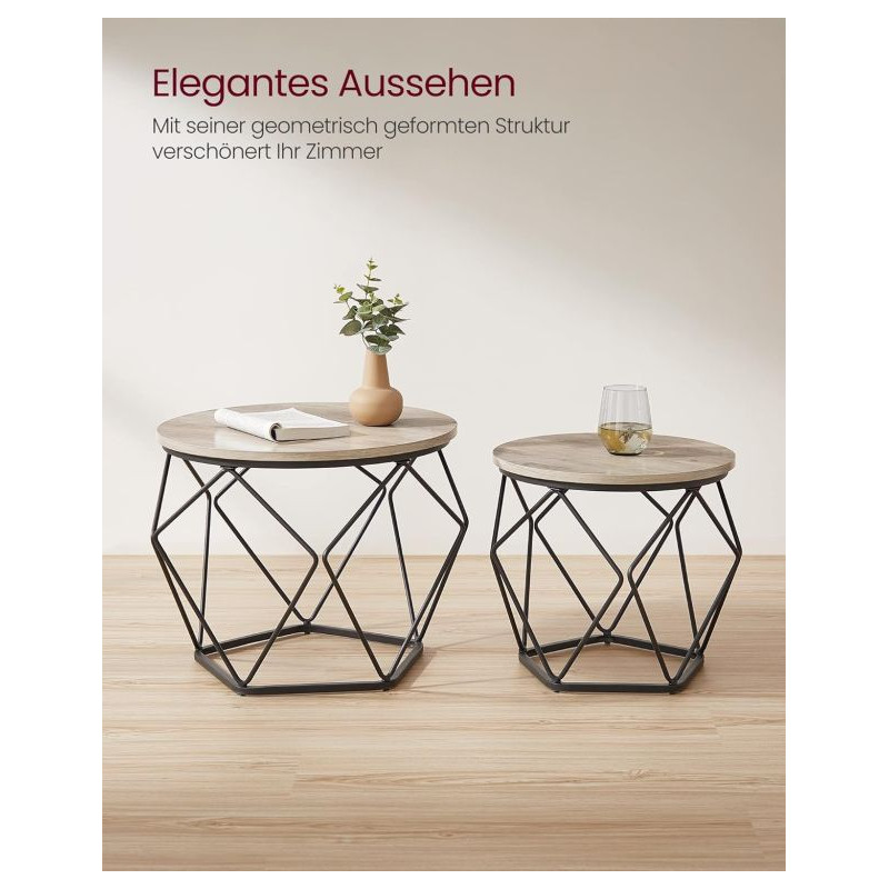Stolíky sú vyrobené z kvalitnej drevotriesky a pevnej ocele, čo zaisťuje ich stabilitu a dlhú životnosť. Jednoduchá a rýchla montáž vďaka prehľadnému návodu a označeným dielom poteší každého. Každý stolík unesie až 20 kg.