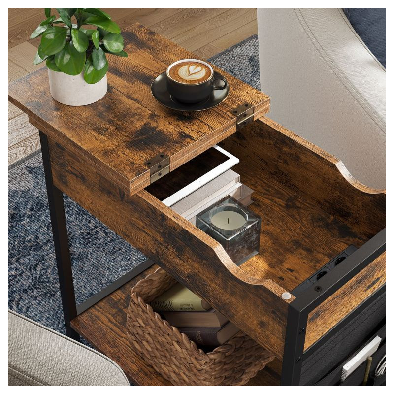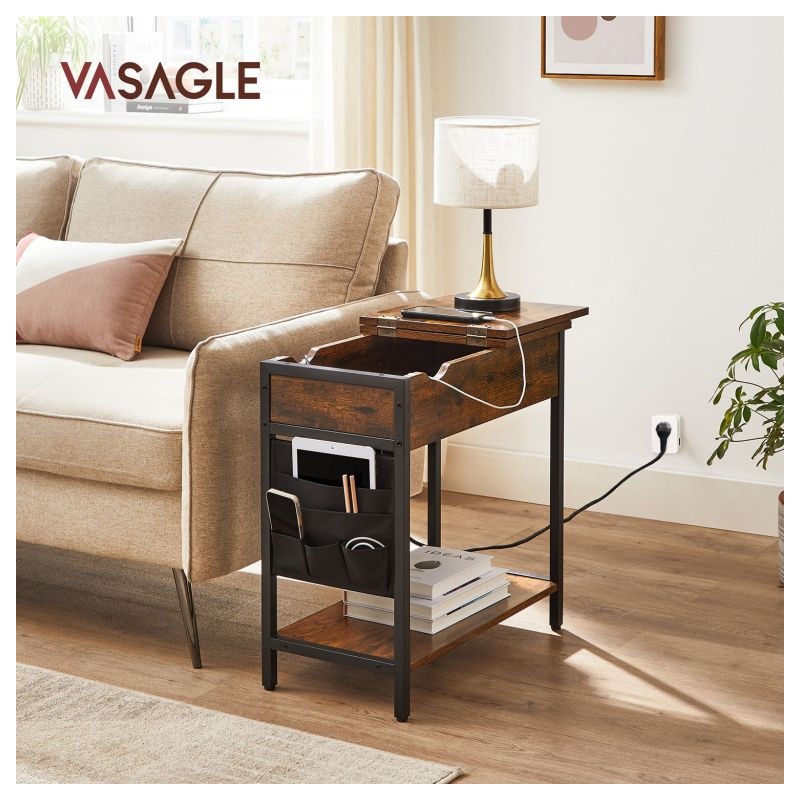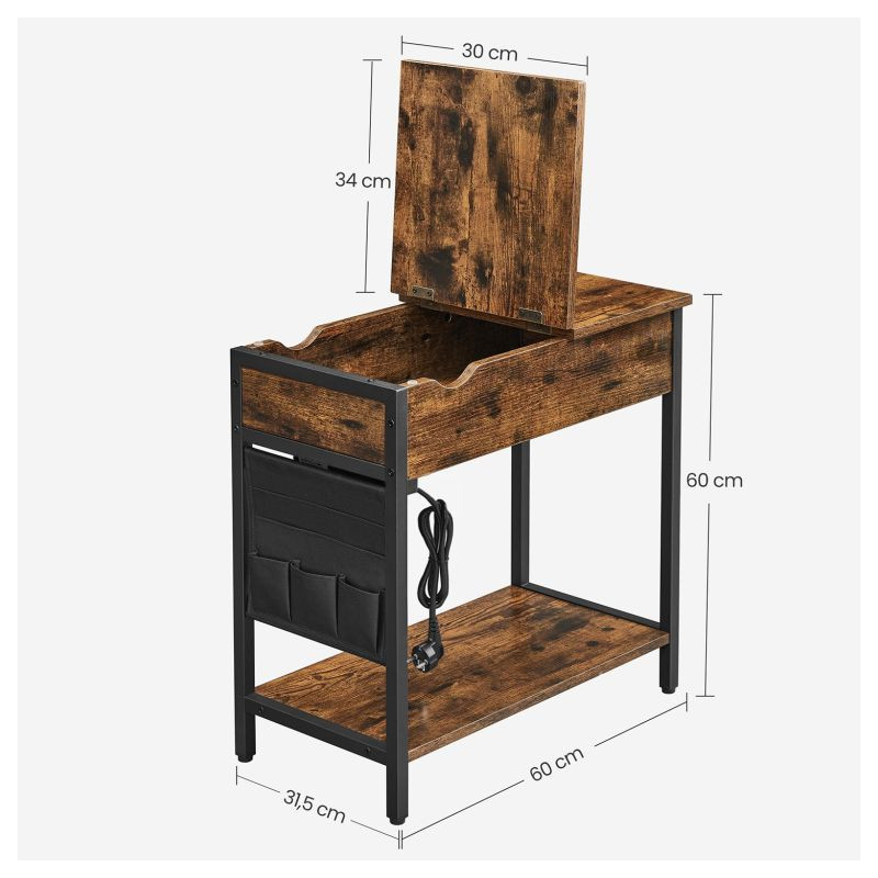 Vytvorte si útulný kútik na relaxáciu aj prácu. Tento stolík k pohovke ponúka nielen miesto na kávu a knihu, ale aj moderné technológie v podobe USB portov a zásuviek priamo po ruke. Štýlová kombinácia čiernej a rustikálnej hnedej oživí každý interiér.