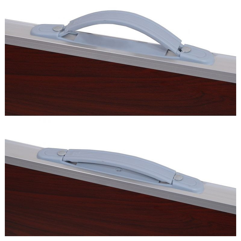 Kvôli svojim rozmerom 80 x 60 x 4 cm a hmotnosti 3,8 kg v zloženom stave, je stôl skladný a môžete ho pohodlne prenášať vďaka prakticky umiestnenému madlu na boku dosky.