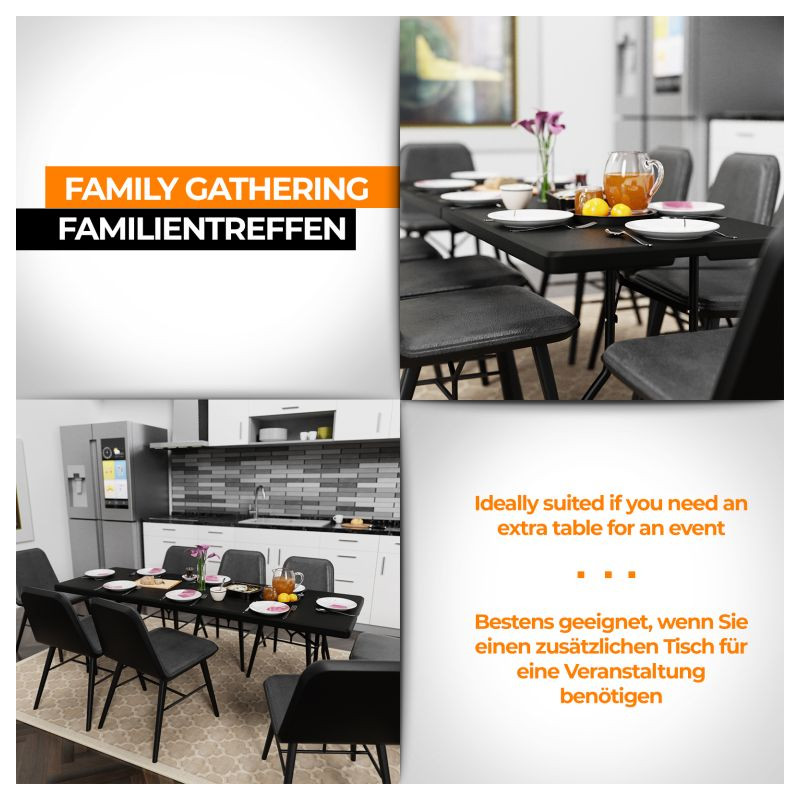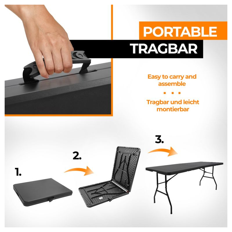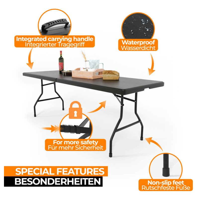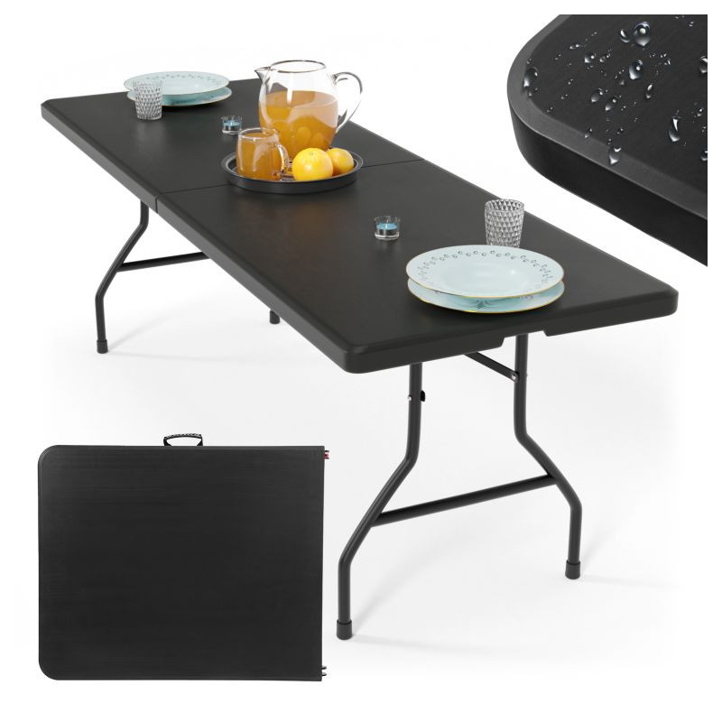 Nie je nič lepšie ako pozvať svojich najlepších priateľov na jedlo, keď je pekné počasie. Je vhodné mať stôl, na ktorom môžete servírovať všetky pripravené pochúťky. Náš čierny skladací stôl je vhodný na každú príležitosť a vďaka skladaciemu mechanizmu je veľmi rýchlo pripravený na použitie. Po jeho použití ho jednoducho zložíte a uložíte za skriňu, do karavanu alebo ho preveziete v aute na ďalšie miesto. Možno ho používať v interiéri aj exteriéri.