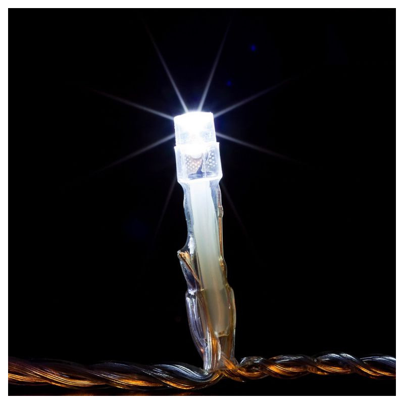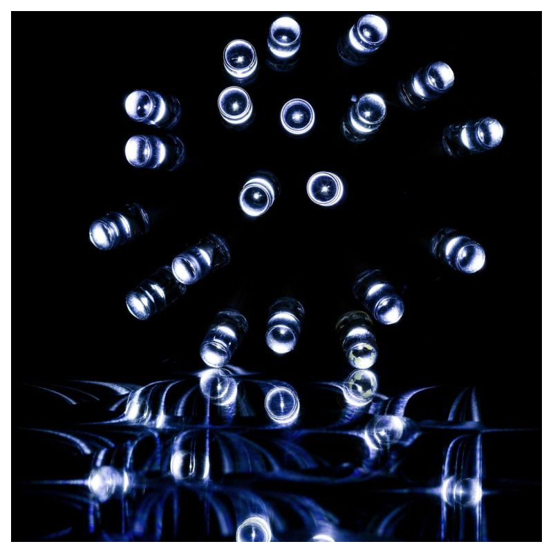 Svetelná reťaz vhodná pre použitie v interiéri aj exteriéri - na okno, chodbu, ale aj na dom alebo stromček. Produkt nie je výhradne určený len na obdobie Vianoc, ale môžete ho využiť aj na osvetlenie Vášho stanu alebo záhrady počas letných mesiacov. LED diódy sú obľúbenou náhradou za klasické žiarovky. V porovnaní s klasickými žiarovkami LED diódy nevyžarujú teplo, sú odolné voči otrasom a môžete vďaka nim ušetriť až 90 % energie, ktorú by ste inak spotrebovali na klasické žiarovky. Priemerná životnosť LED diódy je 2 000 hodín svietenia (normálna žiarovka cca 1 000 hodín v závislosti na svietivosti). LED reťaz spĺňa nemecké normy, má vystavený certifikát bezpečnosti GS a spĺňa stupeň krytia IP44 (pre použitie v exteriéri). Bez blikajúcej funkcie.
