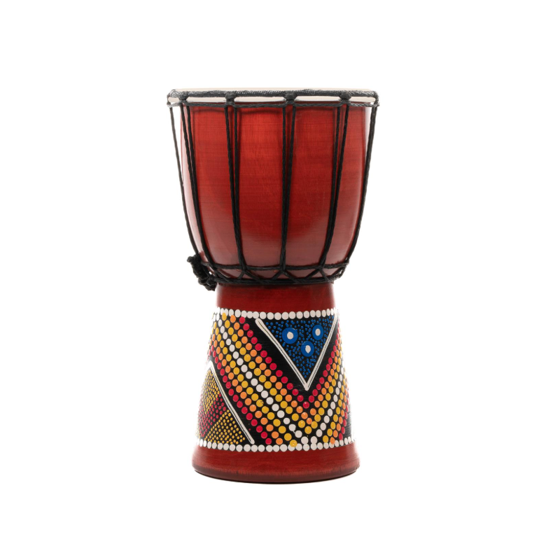 Objavte kúzlo rytmu s týmto jedinečným bubnom djembe, ktorý rozvíja hudobné a motorické zručnosti detí. Tradičná ručná maľba a prírodné materiály z neho robia krásny doplnok nielen do detskej izby, ale aj do obývacej izby alebo kancelárie.