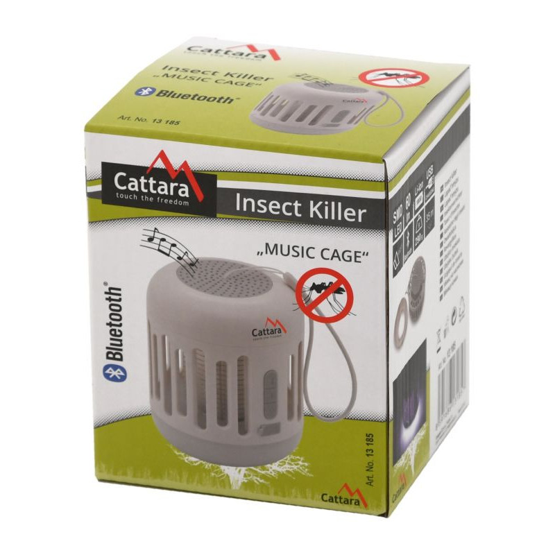 Elektronický lapač hmyzu s funkciou Bluetooth na prehrávanie hudby. Zariadenie využíva svetlo s ultra fialovými lúčmi, ktorými efektívne láka lietavý hmyz (napr. muchy, mory, mole, komáre a ďalšie). Hmyz je po kontakte s kovovou sieťou pod vysokým napätím zahubený elektrickým prúdom. Prístroj na ničenie nevyužíva žiadne chemické látky, pracuje bez zápachu a bez znečistenia. Prístroj je možné využiť aj ako stolnú lampičku a zároveň ako prehrávač hudby pomocou Bluetooth prenosu z Vášho chytrého zariadenia, jednoduchým stlačením tlačidla na spárovanie. Prístroj je určený na položenie na stôl, alebo na prenášanie pomocou popruhu na vrchnej strane zariadenia. Zariadenie je napájané pomocou Li-Ion akumulátora 18650 s kapacitou 1800mAh. Nabíjanie je riešené pomocou priloženého napájacieho kábla.