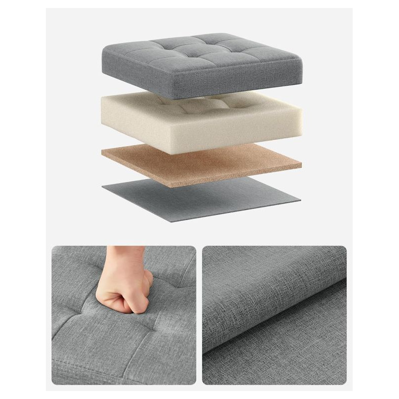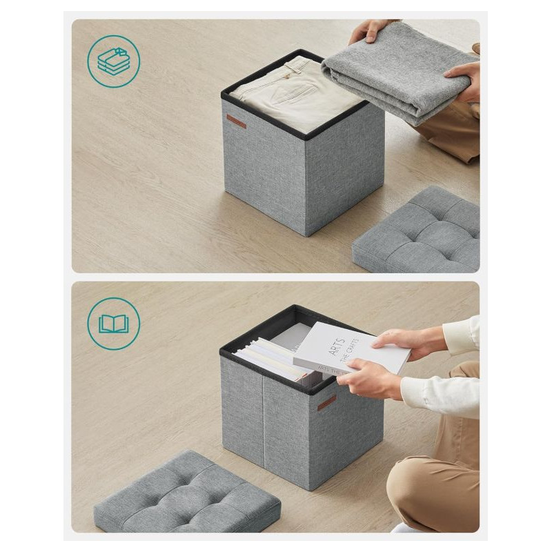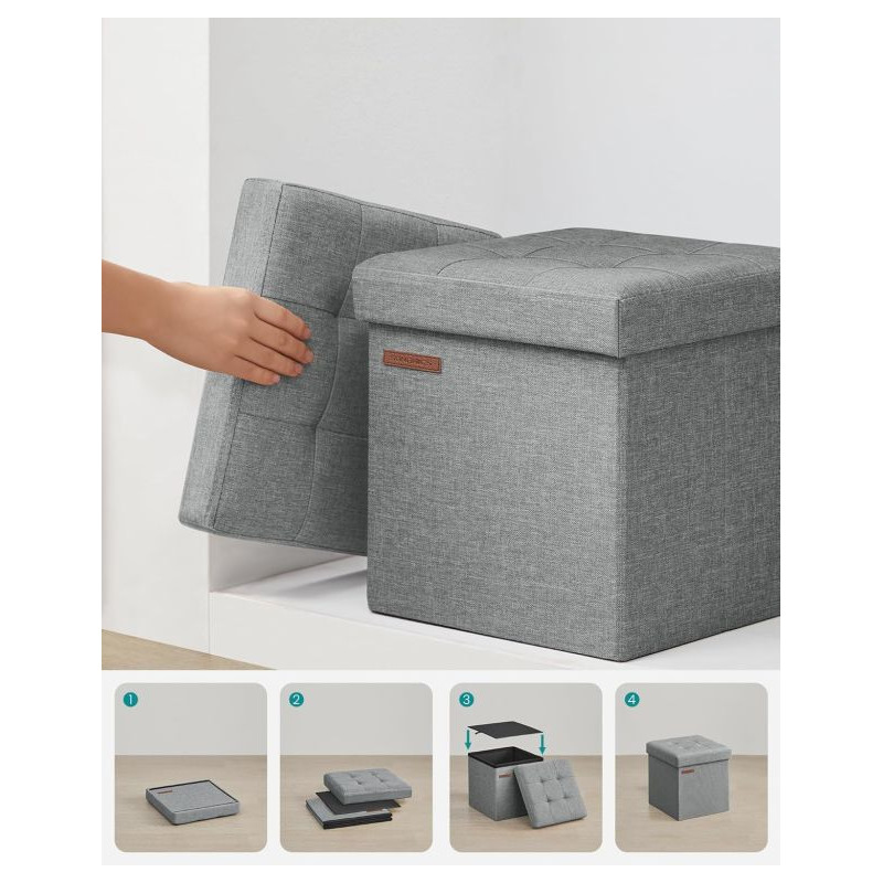 Elegantný a praktický pomocník pre každý domov – skladací taburet SONGMICS v modernej svetlo šedej farbe kombinuje štýl, pohodlie a funkčnosť. Vďaka mäkkému čalúneniu z ľanovej tkaniny poskytuje príjemné sedenie a zároveň ukrýva dostatok priestoru na uloženie drobností, diek či kníh. Je ideálny do obývačky, spálne i predsiene – jednoducho všade tam, kde potrebujete viac miesta aj štýlu.