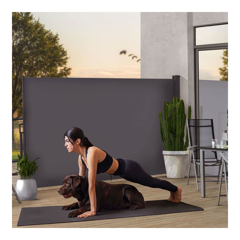 Bočná clona je praktickým riešením pre každého, kto si chce na terase alebo balkóne vytvoriť súkromný a chránený priestor. Tmavošedý odtieň pôsobí moderne a elegantne, ľahko sa začlení do exteriéru a vytvára príjemné prostredie na relax, rodinné chvíle a večerné posedenia. Vďaka výsuvnému mechanizmu je možné clonu používať presne podľa potreby.