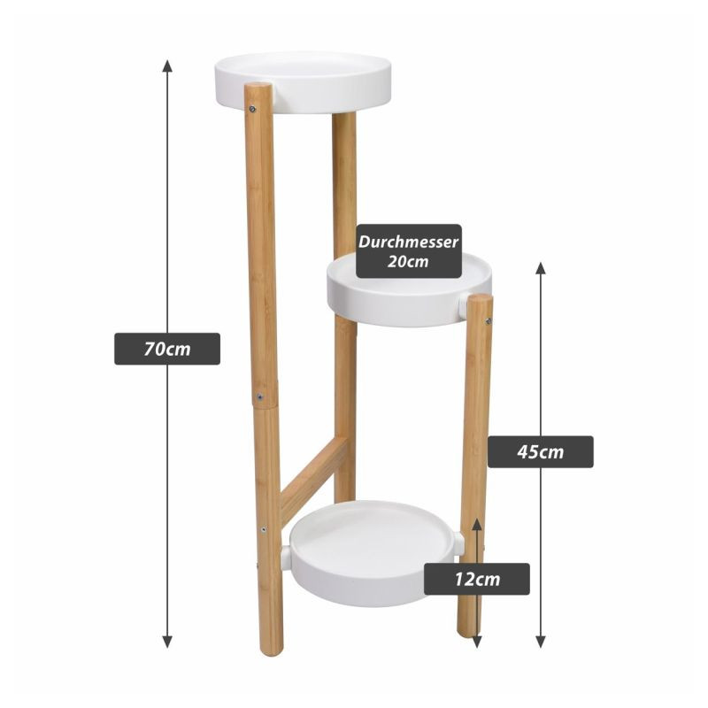 Dekoratívny stojan na kvety z robustného bambusového dreva do vašej obývačky, spálne, kúpeľne, zimnej záhrady alebo napríklad na váš balkón. Bambusové drevo dodáva tomuto stojanu na kvety prirodzené kúzlo a zaistí prehľadnosť okenných parapetov. Vďaka rôznym výškam je možné na tento krásny kvetinový stojan umiestniť aj rastliny rôznych veľkostí. Jednoduchým zostavením je možné kvetinovú policu postaviť behom chvíľky.