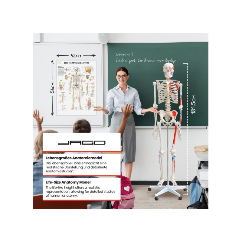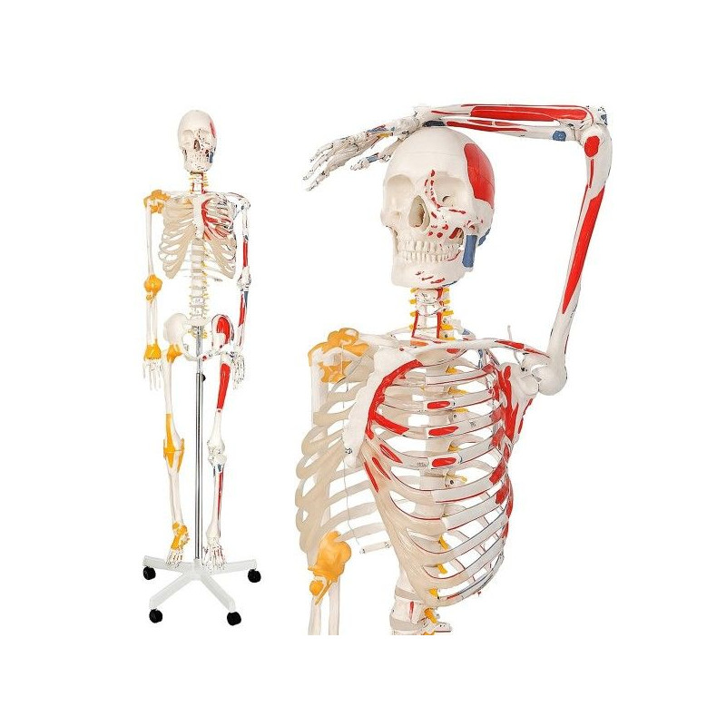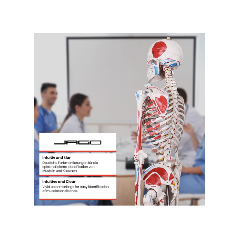 Objavte fascinujúci svet ľudského tela s týmto anatomickým modelom v životnej veľkosti. Ideálny pre študentov, učiteľov aj nadšencov, ktorí chcú preniknúť do tajov anatómie a pochopiť, ako funguje naše telo. Model je skvelým pomocníkom pri štúdiu aj prezentácii, inšpirovaný skutočnou ľudskou kostrou s detailne vyznačenými svalmi a šľachami.