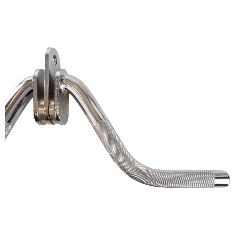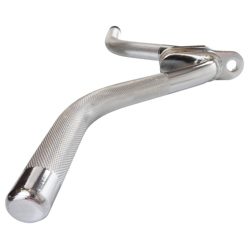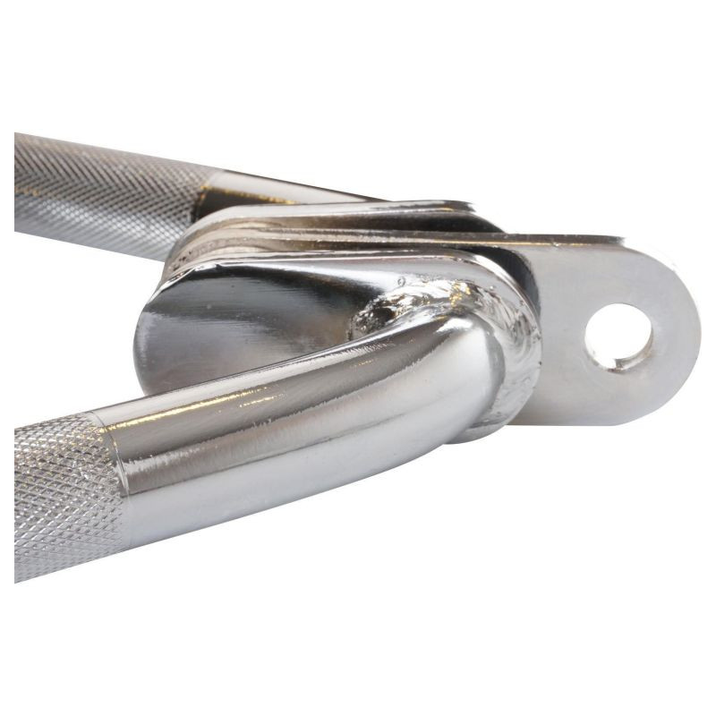 Vyrobená z masívnej ocele s chrómovou povrchovou úpravou, rukoväť je odolná proti opotrebeniu a ľahko sa pripája pomocou karabíny. Otočná rukoväť zaisťuje voľnosť pohybu pri rôznych cvičeniach, zatiaľ čo vroubkovaný povrch zlepšuje priľnavosť aj pri intenzívnom tréningu. Údržba je jednoduchá, stačí utrieť vlhkou handričkou.