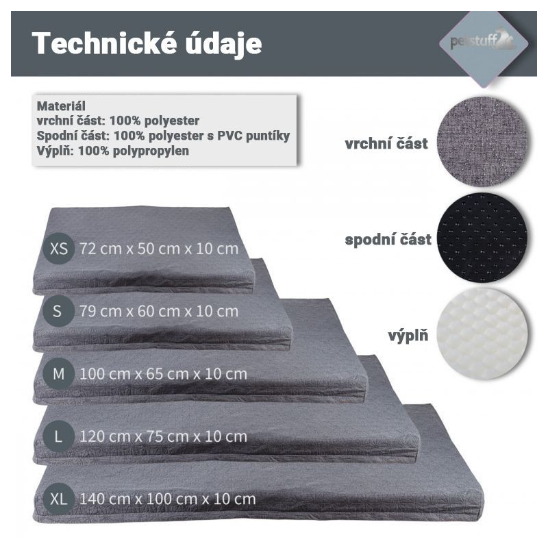 Vankúšik pre psa veľkosť XS, svetlo šedý, 72 x 50 x 10 cm