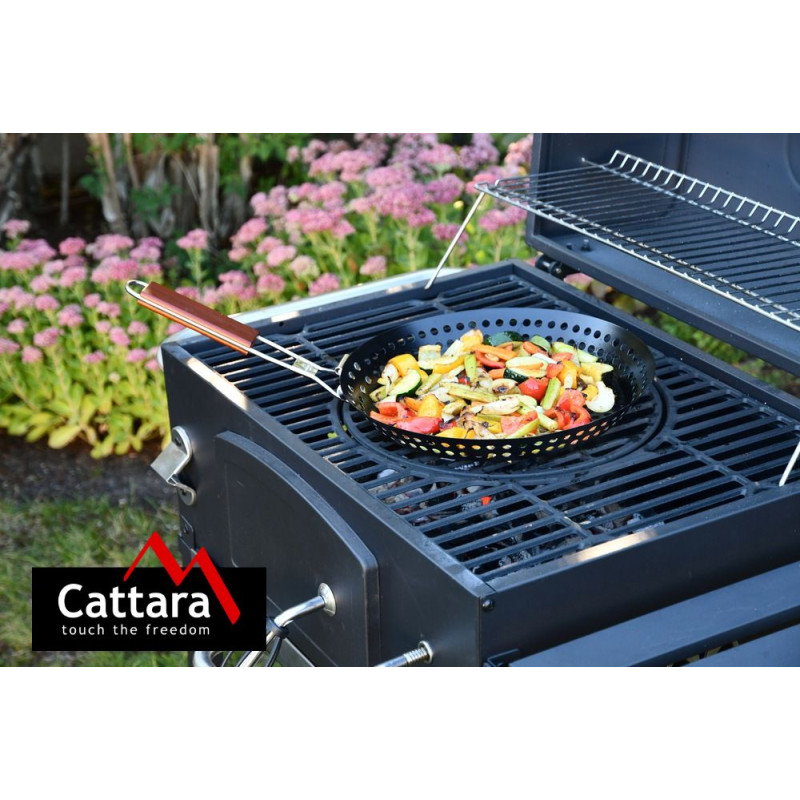 Panvica je vyrobená z kvalitnej ocele čierno-sivej farby, s priemerom 30 cm a hĺbkou 3,5 cm. Uplatnenie nájde napríklad pri príprave plátkov zemiakov, rýb a iných ďalších pokrmov. Panvicu je možné ľahko prenášať, najmä vďaka sklápacej rukoväti. Rukoväť je vyrobená z nerezovej ocele, v úchopovej časti doplnenej dreveným obložením pre pohodlnejší úchop.