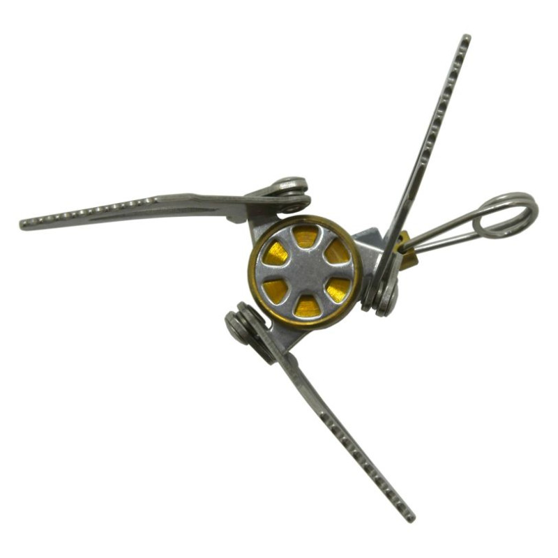 Outdoorový varič na propán-bután, na ohrievanie a prípravu pokrmov na cestách, v kempe a pod. Varič sa pripája jednoduchým naskrutkovaním ku kartuši s propán-butánom, ktorá musí byť vyrobená podľa EN 417 a vybavená samotesniacim ventilom s pripojovacím závitom 7/16. variče, uľahčuje presné nastavenie veľkosti plameňa. Varič je vybavený sklápacími lopatkami, vďaka ktorým je zaistený dokonalý plošný ohrev kastrólov, hrncov aj panvíc.Celokovová, nehrdzavejúca konštrukcia variči zaručuje nízku váhu, pri zachovaní maximálnej odolnosti a kvality spracovania. Varič zaberá len veľmi málo miesta, navyše je umiestnený v cestovnej taštičke.